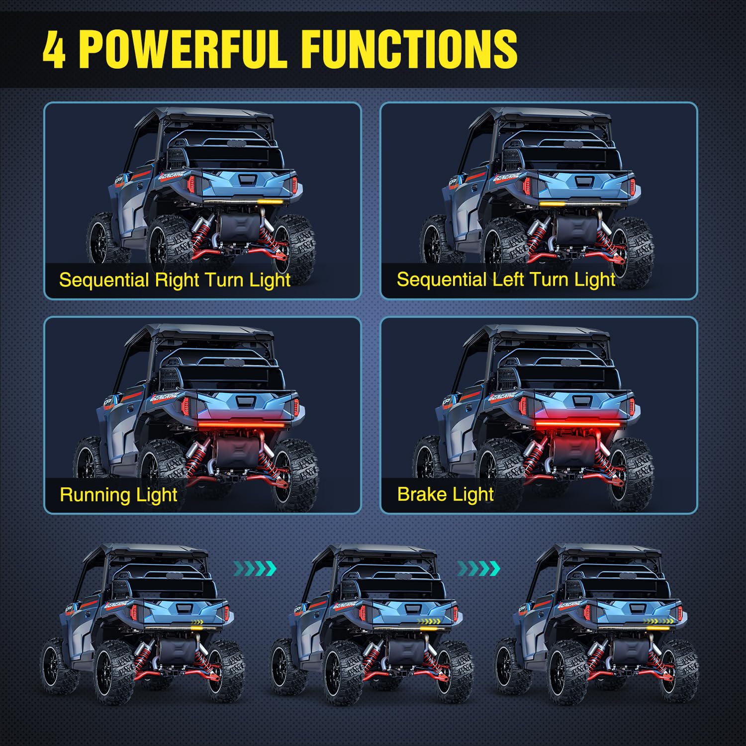 Wide Application: The light strip is suitable for 12V UTV ATV Polaris RZR, Kawasaki Mule, Can Am Maverick Defender Commander, Honda Pioneer Talon. It can also be used for Golf Carts, Trucks, Trailers, Off-road vehicles etc