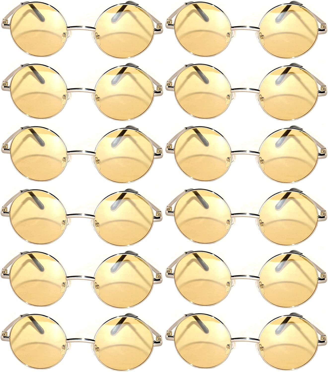 Description Hurry, don't miss out on the captivating allure of our Round Sunglasses! Transport yourself to the iconic era of peace, love, and self-expression with these must-have hippie sunglasses. Crafted with a round metal frame, available in multiple color variations, and featuring UV400 polycarbonate lenses, these sunglasses are designed to turn heads and protect your precious eyes from harmful rays. Imagine the freedom to choose your lens style. With options like mirror, smoke, and tinted lenses, you can effortlessly create your desired look and make a statement that is uniquely you. Whether you want to exude confidence with a bold mirror finish, embrace timeless elegance with smoke lenses, or radiate a warm vintage vibe with yellow tinted lenses, we've got you covered. But that's not all! Our circle sunglasses are not just fashionable accessories; they are your ticket to unlocking a world of limitless possibilities. Embrace the transformative power of cosplay with these sunglasses, as they effortlessly embody the iconic styles of legends like John Lennon, Matt Murdock, Oozy Osbourne, Elton John, and even Harry Potter. With a pack of 12 in bulk, you can invite your friends on this captivating journey and create unforgettable group costumes together. Now is the time to act! Don't wait, as stocks are limited. Join the ranks of trendsetters and fashion enthusiasts who understand the scarcity of true style. Our OWL Round Glasses are here to elevate your fashion game and transport you to an era of authenticity and individuality. Make the bold choice and experience the timeless magic today! Unlock your inner hippie, protect your eyes with confidence, and seize the opportunity to own these exclusive OWL Round Sunglasses. Elevate your style, make a statement, and embrace the allure of the past. But remember, time is of the essence. Package Includes: 12 x Round Sunglasses Bulk