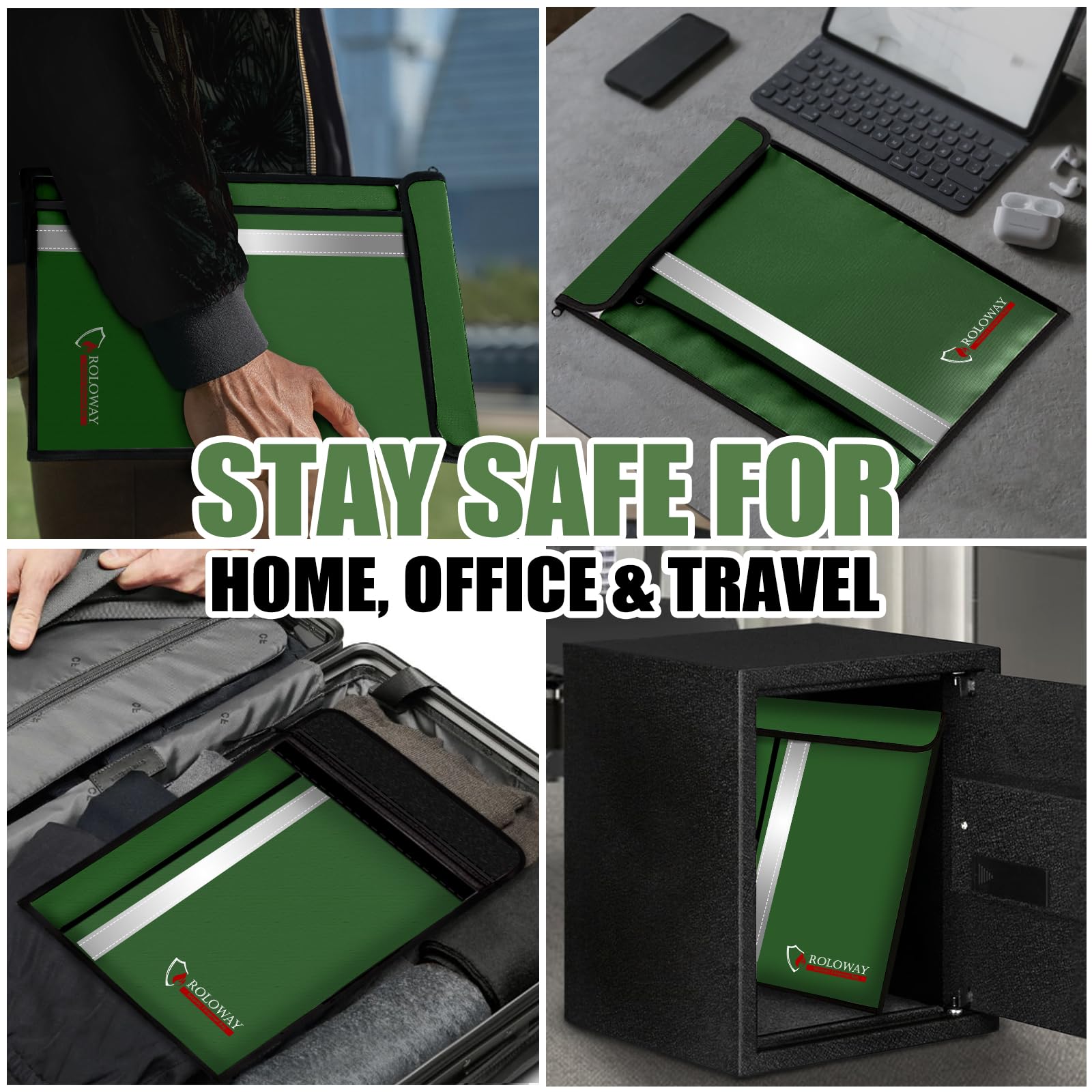 [NIGHT REFLECTIVE STRIP DESIGN]: In emergencies, time is of the essence. Our fireproof money bag for cash features a Reflective Strip for quick and easy access, even in the dark. The high visibility design ensures faster retrieval of your valuables, making our fire document storage ideal for a Grab & Go. With water-resistant, NON-ITCHY SILICONE COATED FIBERGLASS, and a PORTABLE DESIGN, our document bag fireproof offers unmatched convenience for home, office, or travel.