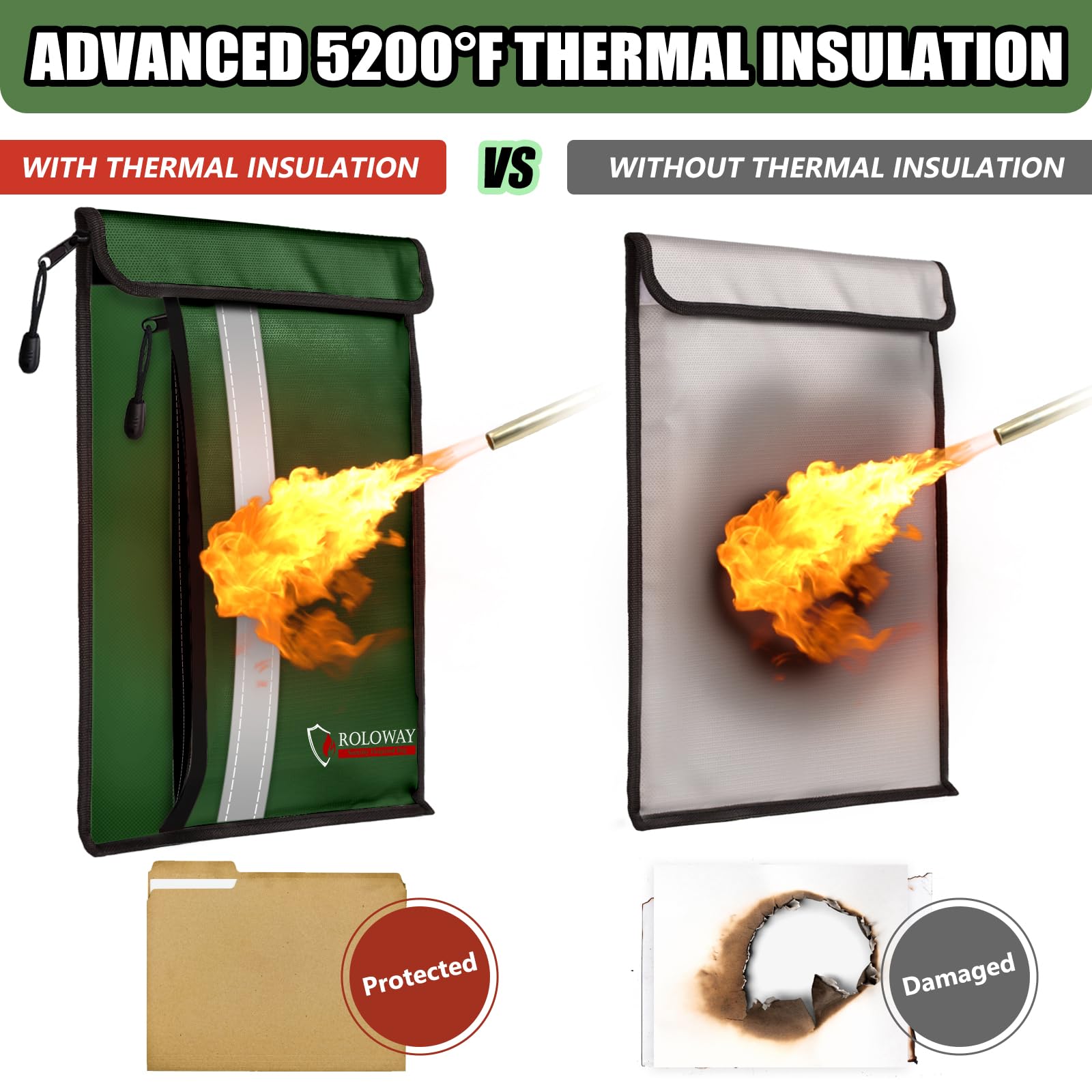 [UPGRADED FIREPROOF DOCUMENT BAG – 5200°F HEAT INSULATED]: Our Upgraded Fireproof Bag is equipped with 10-LAYER Fire Resistant & Heat Insulation Structure. This fireproof document bag offers exceptional heat resistance, withstanding temperatures up to 5200°F for a certain period. Enhanced with silicone coating and secure hook & loop closure, it provides additional water resistance. Recommended by firefighters, this document safe fireproof bag ensures the safety of your valuables.