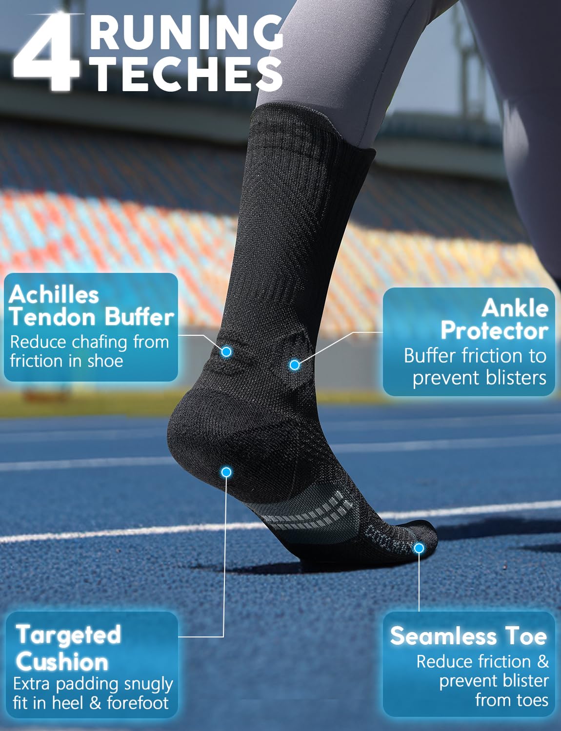 【Blister Defense, All-Day Comfort】 Anti-blister design with seamless toes and reinforced padding protects during rocky hikes or city walks. Pair with yoga pants and cushioned sneakers for runs as smooth as your athleisure aesthetic.