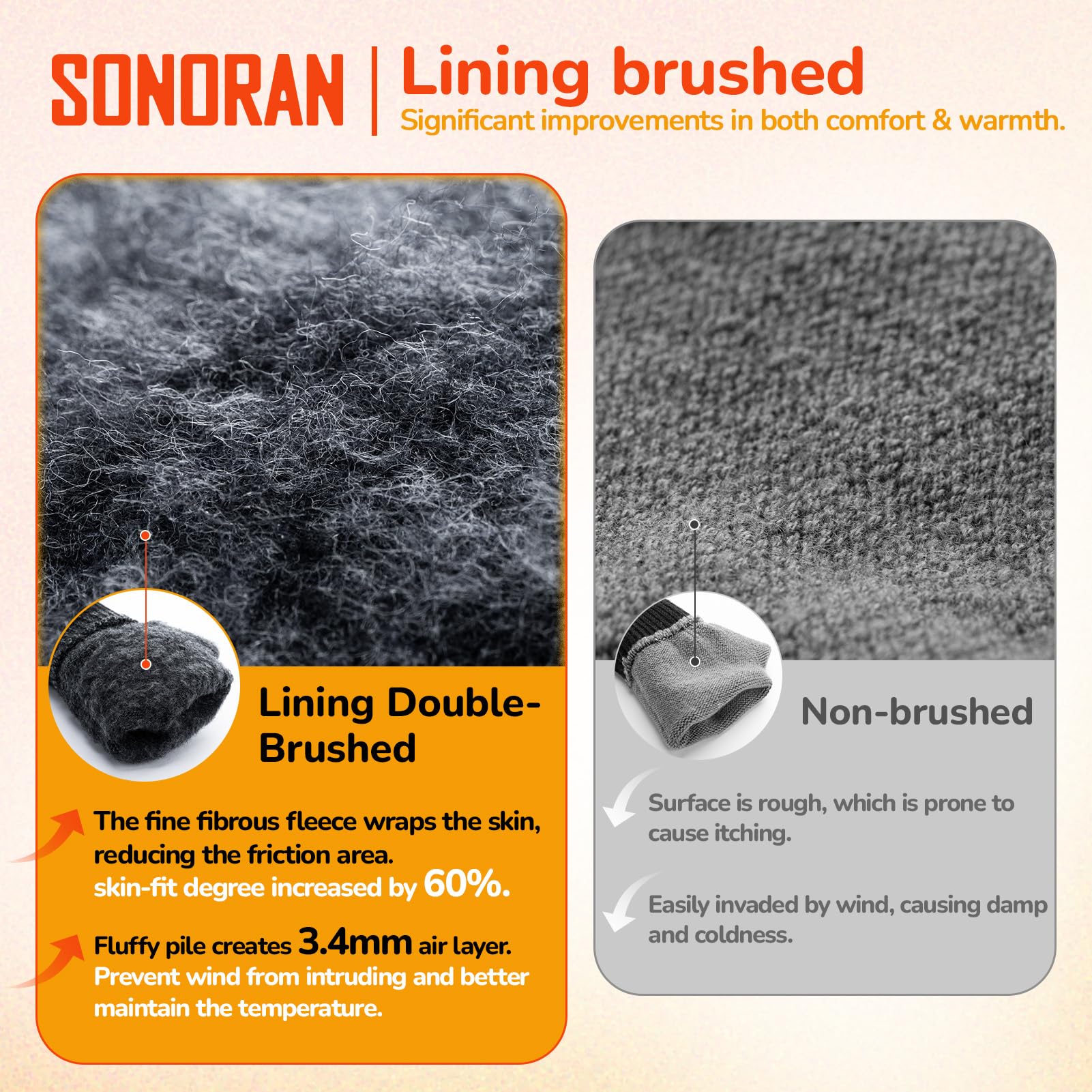 Merino Wool: Crafted from lightweight merino jersey fabric and anti-pilling acrylic, these gloves provide superior warmth and ensure your comfort all day long. The natural properties of merino wool help regulate temperature and keep you comfortable in any weather. Choose SONORAN premium merino wool gloves to stay warm and stylish all day long.