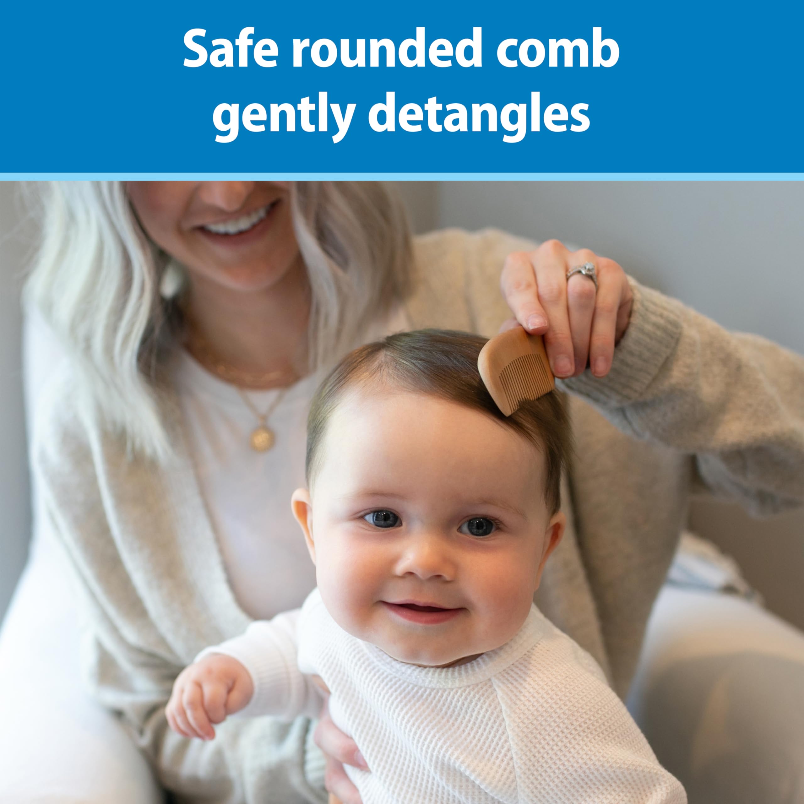 SAFE ROUNDED COMB. The teeth of the baby comb are a safe, rounded shape to gently remove tangles