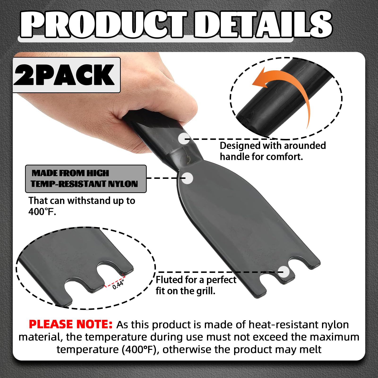 Heat-resistant Grill Cleaner Tools - The scraper is made from high temp-resistant nylon that can withstand up to 400℉. PLEASE NOTE: As this product is made of heat-resistant nylon material, the temperature during use must not exceed the maximum temperature (400°F), otherwise the product may melt