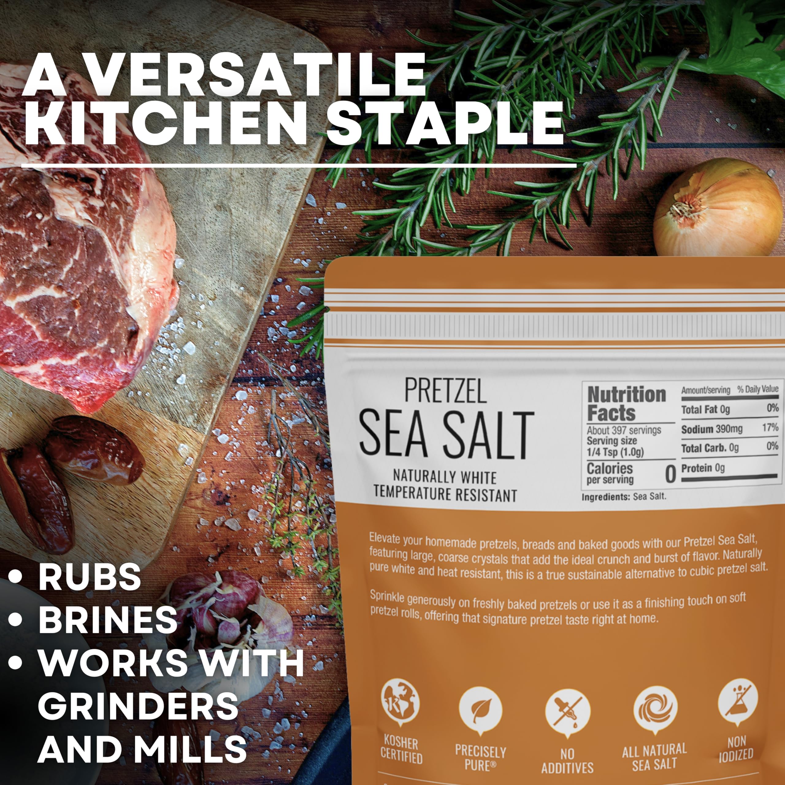 Crafted for Every Kitchen: Designed for home cooks and professional chefs, our white coarse salt for pretzels & bagels delivers restaurant-quality flavor. Elevate everyday meals and gourmet creations with Sea Salt Superstore's premium quality salts.