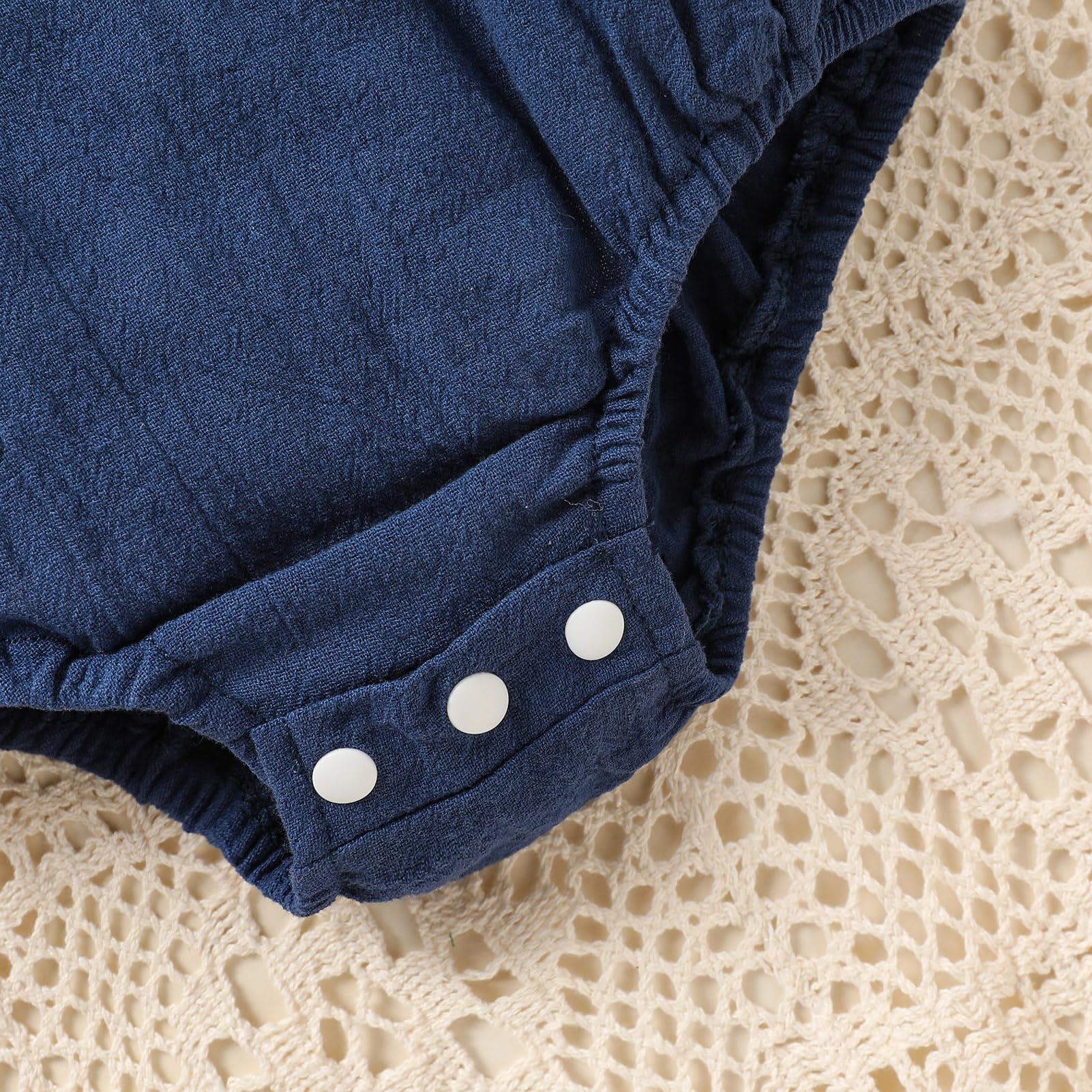 【Chic and Adorable Design】Solid color summer jumpsuit, the middle of the clothes saying "1 birthday".Covered elastic on waist of the bottoms for comfort and stretchy.