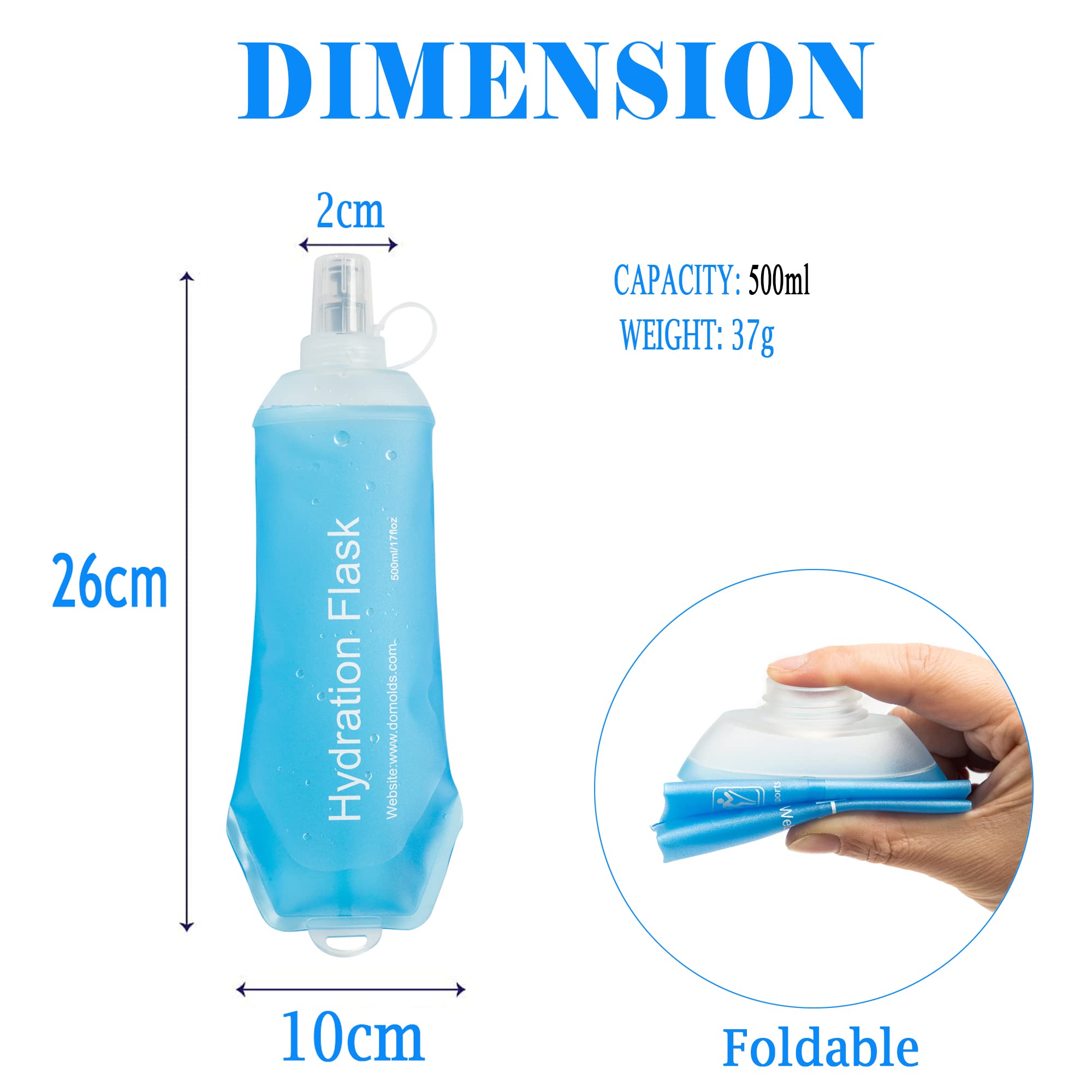 Foldable running water bottle is easy to carry whenever empty or full. It is ideal for hydration running vest and hydration waist belt. Soft flask can be used by adults and children, men and women