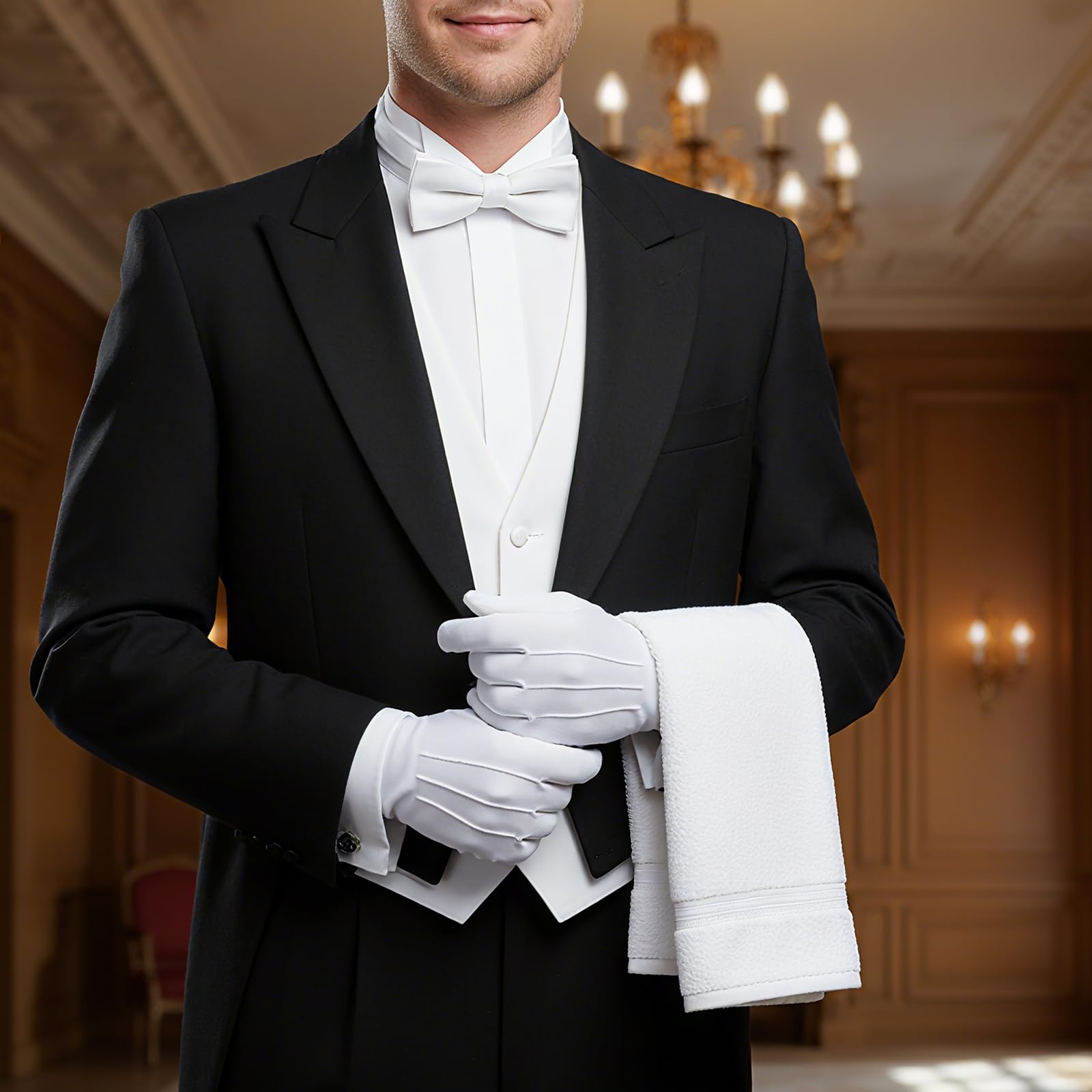 Wide applications: stitched cotton gloves are for use in catering, formal events, tuxedo, jewelry inspection