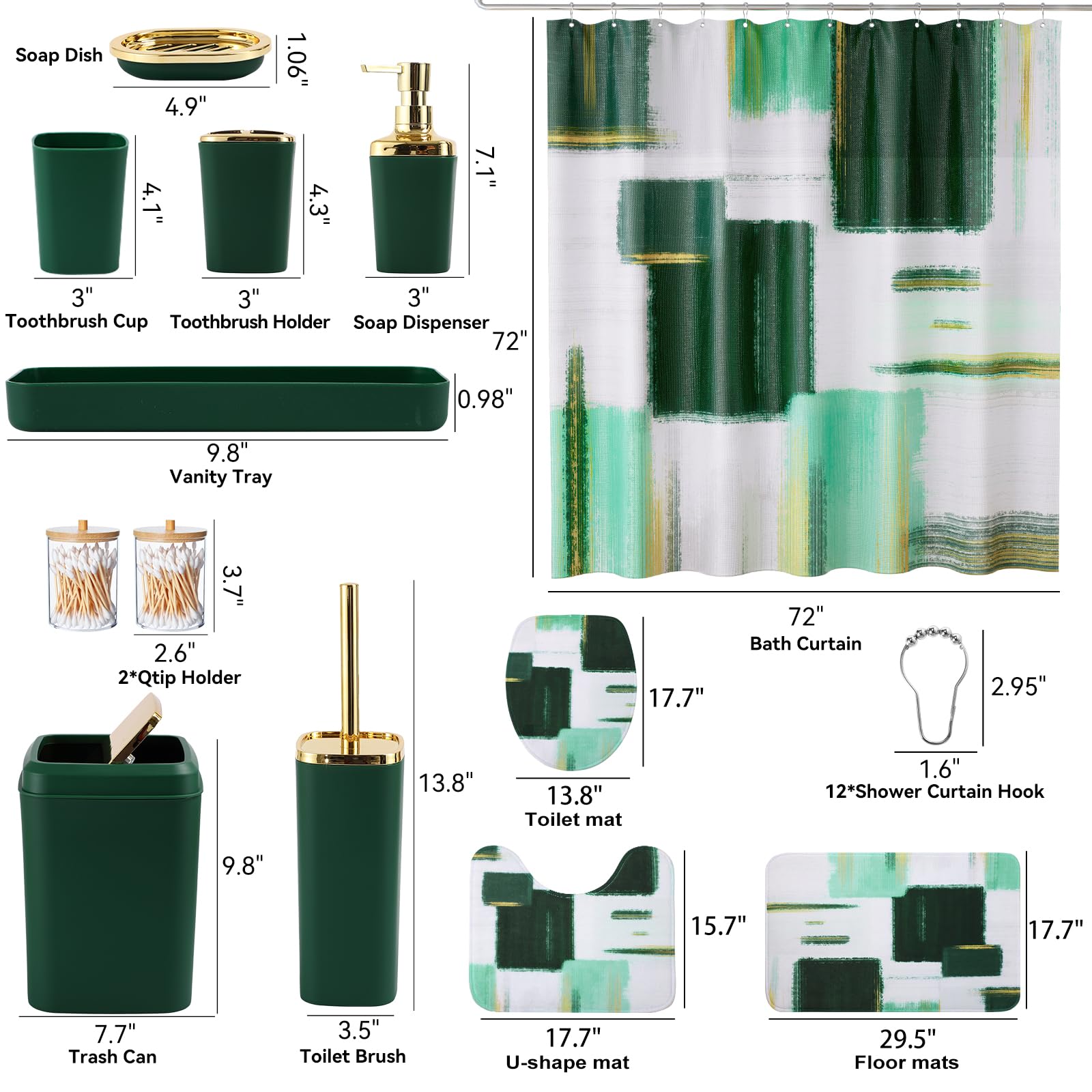 ใ๐๐๐ซ๐ค ๐๐ซ๐๐๐ง ๐๐๐ญ๐ก๐ซ๐จ๐จ๐ฆ ๐๐๐๐๐ฌ๐ฌ๐จ๐ซ๐ข๐๐ฌ ๐๐๐ญใUpdate your bathroom set with dark green bathroom decor, creating a stylish, complete and unified with a green bathroom rug set and bathroom accessory set.