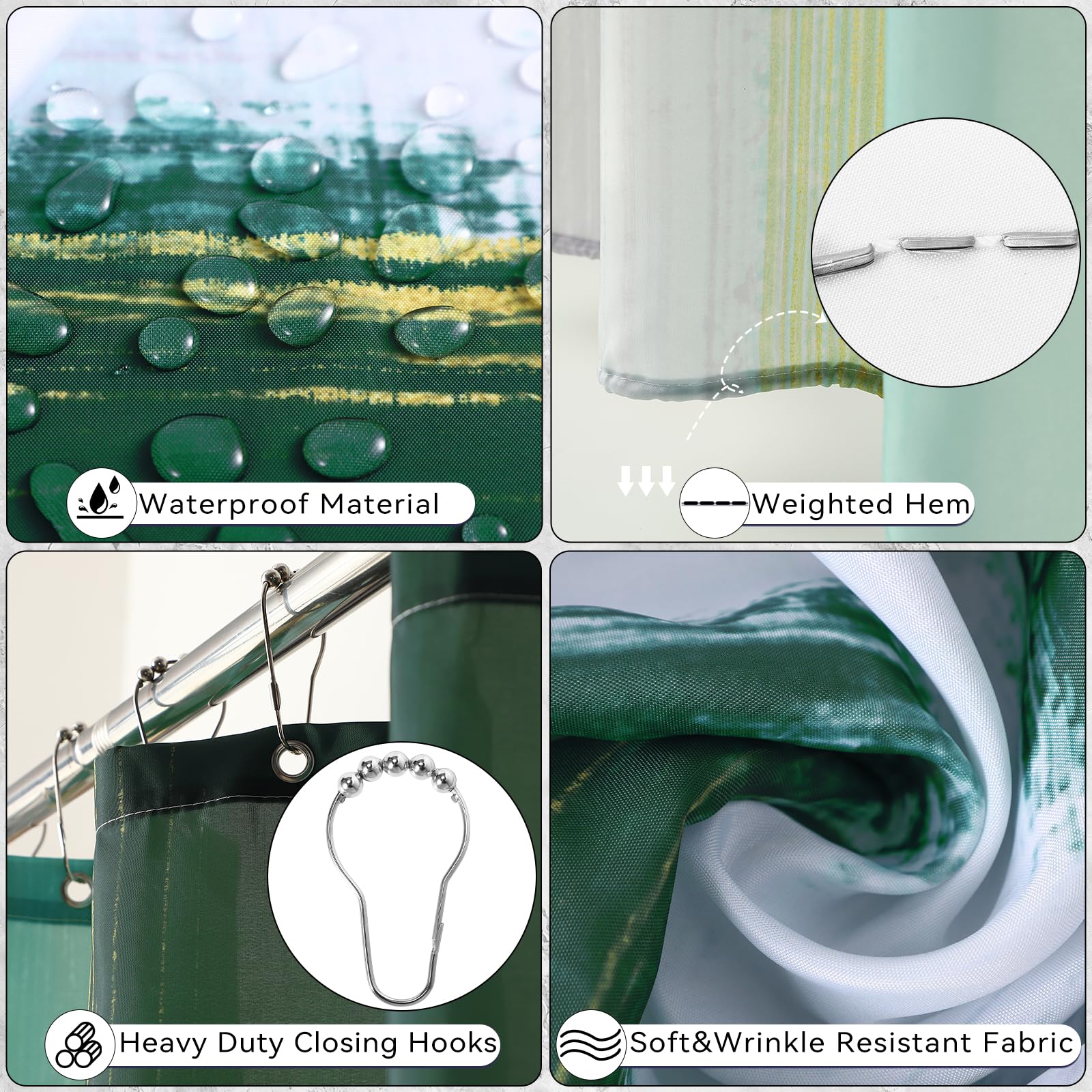 ใ๐๐ ๐๐ข๐ง๐ญ๐ข๐ง๐ ๐๐ก๐จ๐ฐ๐๐ซ ๐๐ฎ๐ซ๐ญ๐๐ข๐งใMade of soft and high quality polyester cloth, which is waterproof, durable and long-lasting use. The dark green printed shower curtain is waterproof and dries quickly, making it suitable for use in damp bathrooms. Unique design just like a realistic landscape. helping you to enjoy pleasant bath time.