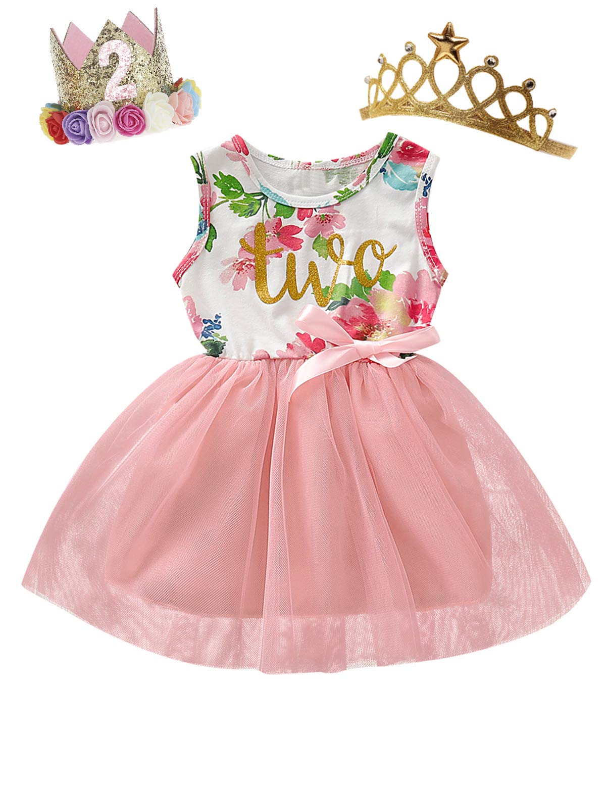 A beautiful two years old birthday dress with crown and wreath makes the baby sweet and cute