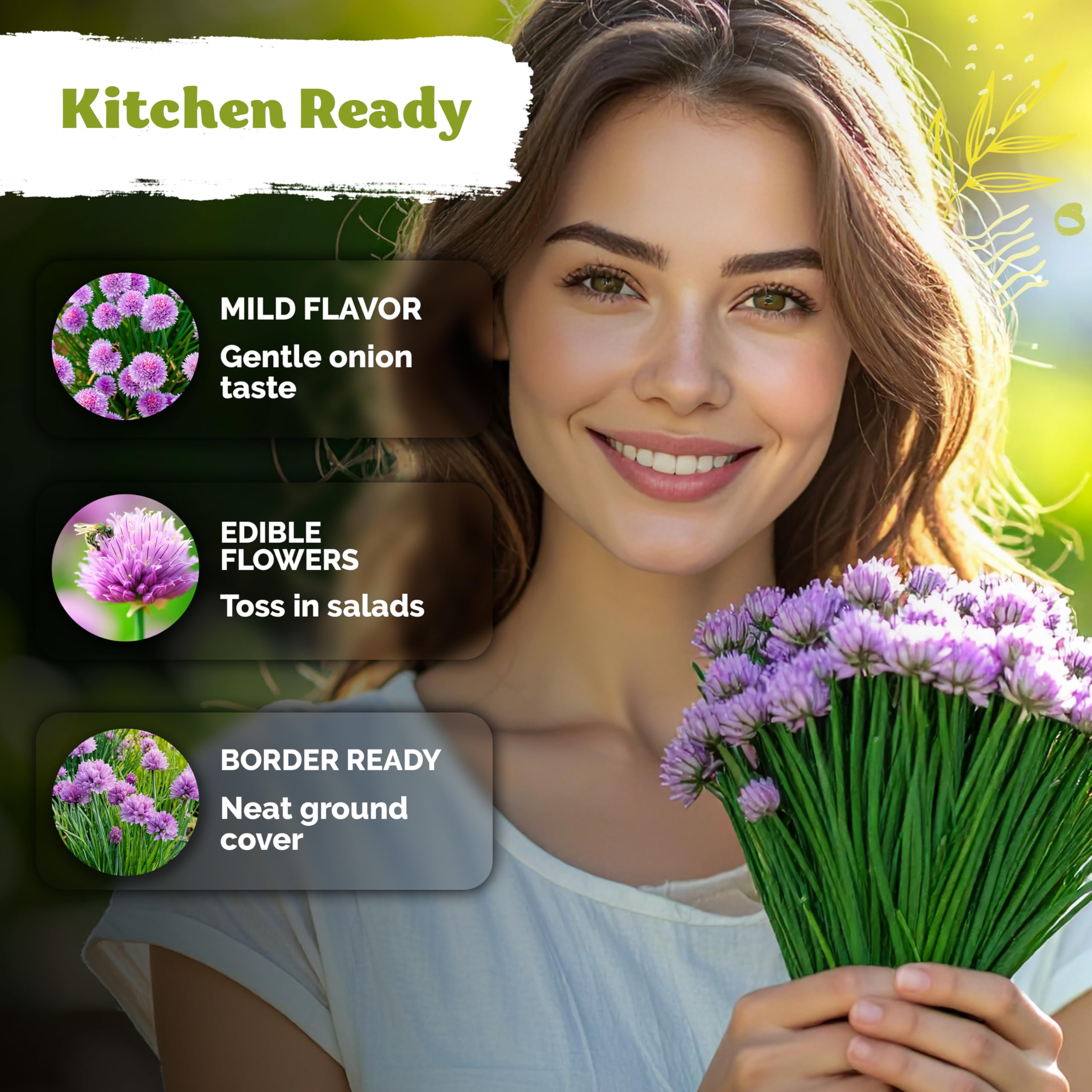 Pollinator & Companion Plant: Dainty blooms attract pollinators. Plant onion chives near tomatoes, carrots, or peppers to support flavor and growth. Non-GMO heirloom seeds for easy planting.