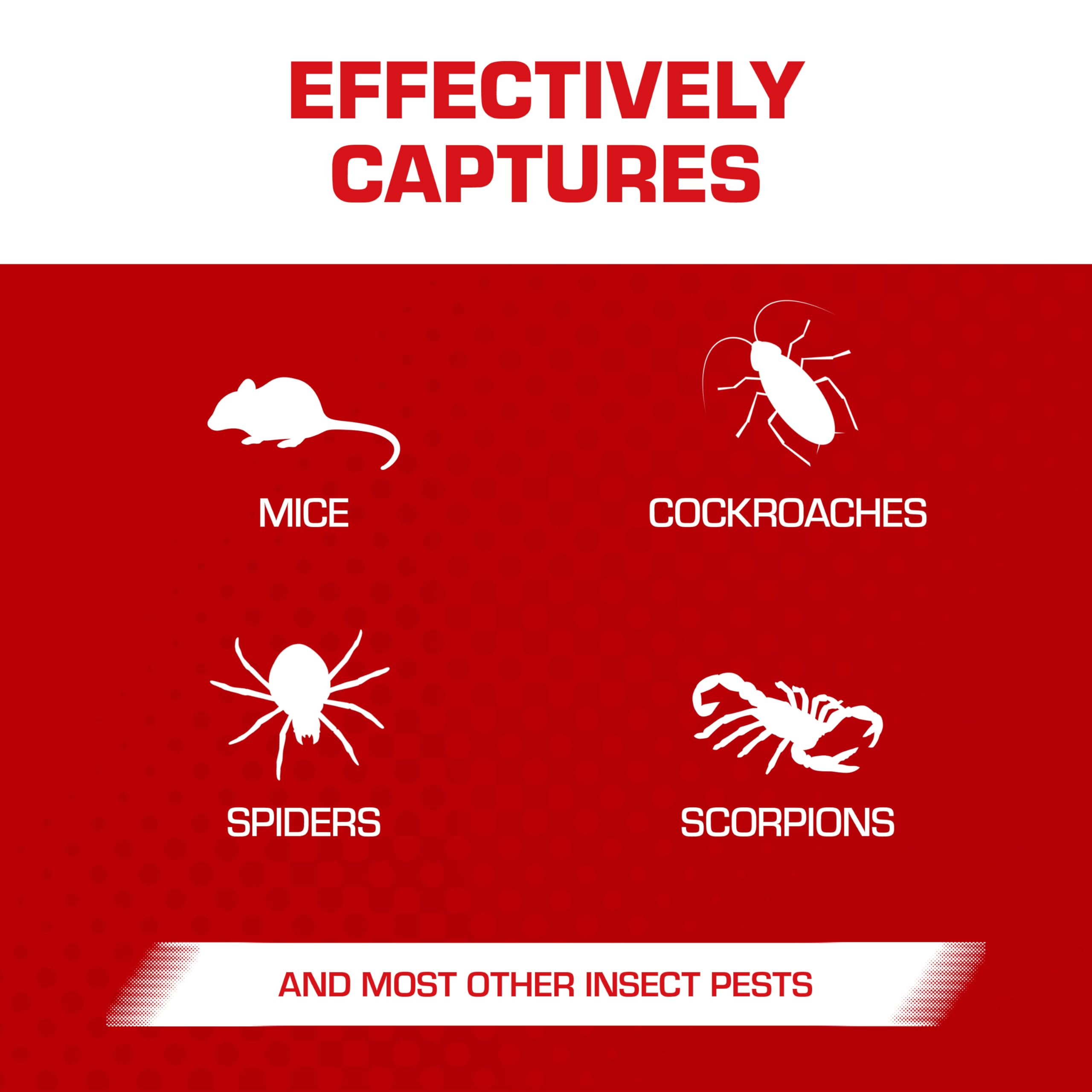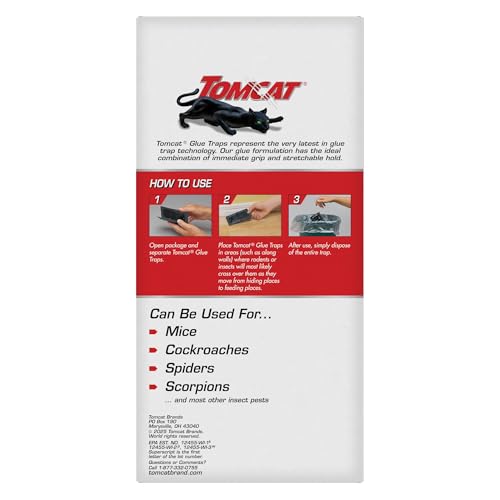 Tomcat Glue Traps Mouse Size with Eugenol for Enhanced Stickiness effectively capture mice and other household pests like cockroaches, spiders, or scorpions without the use of bait