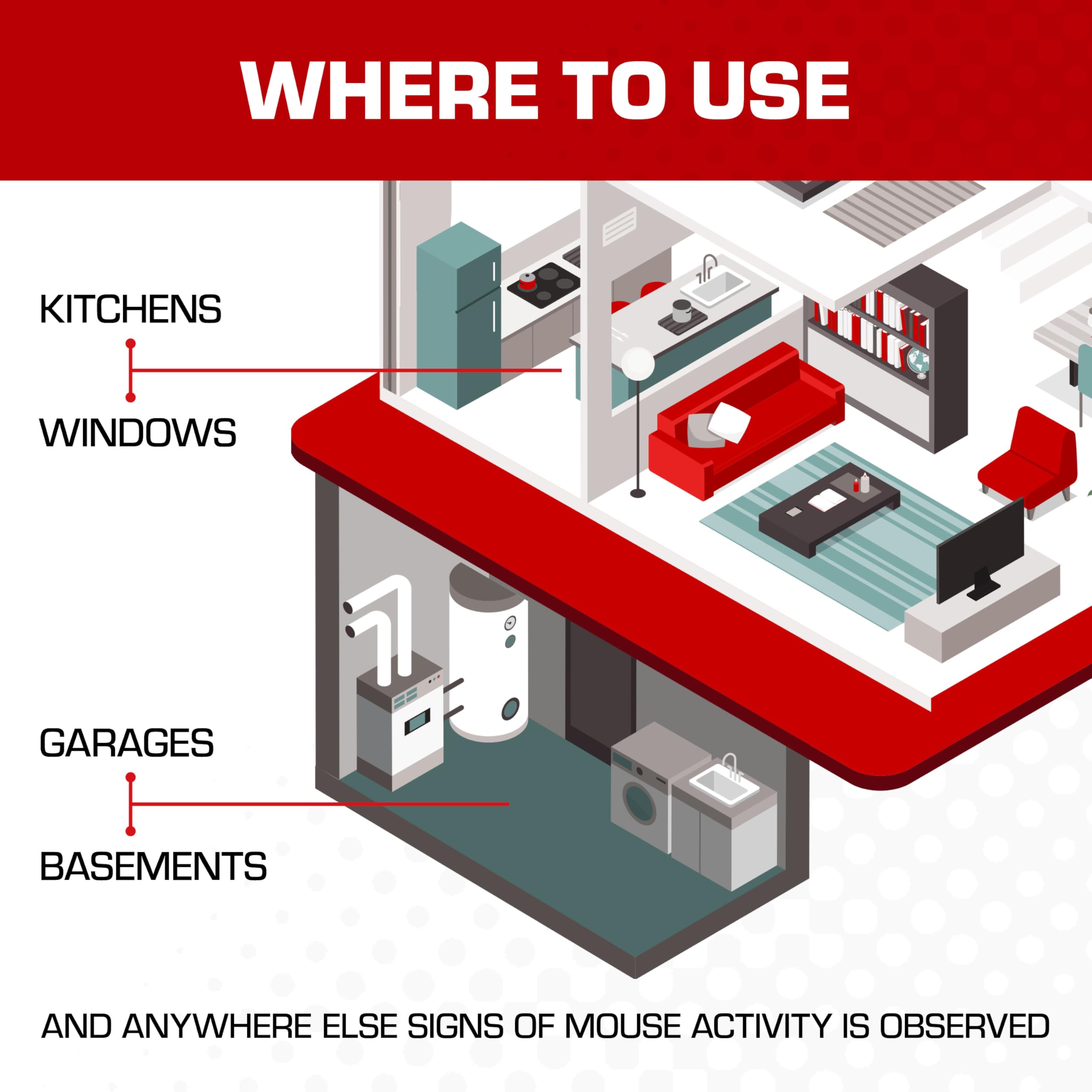 Place these pest control traps along the walls of rooms or cupboards where rodent activity is suspected, such as kitchens, basements, or garages