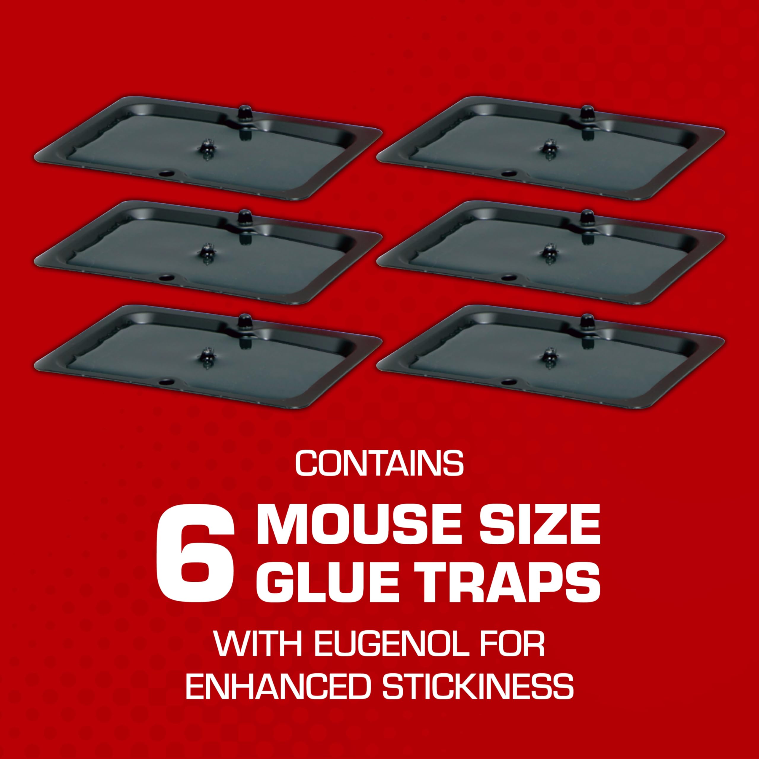 Each package of Tomcat Glue Traps Mouse Size with Eugenol for Enhanced Stickiness contains 6 disposable mouse-sized traps