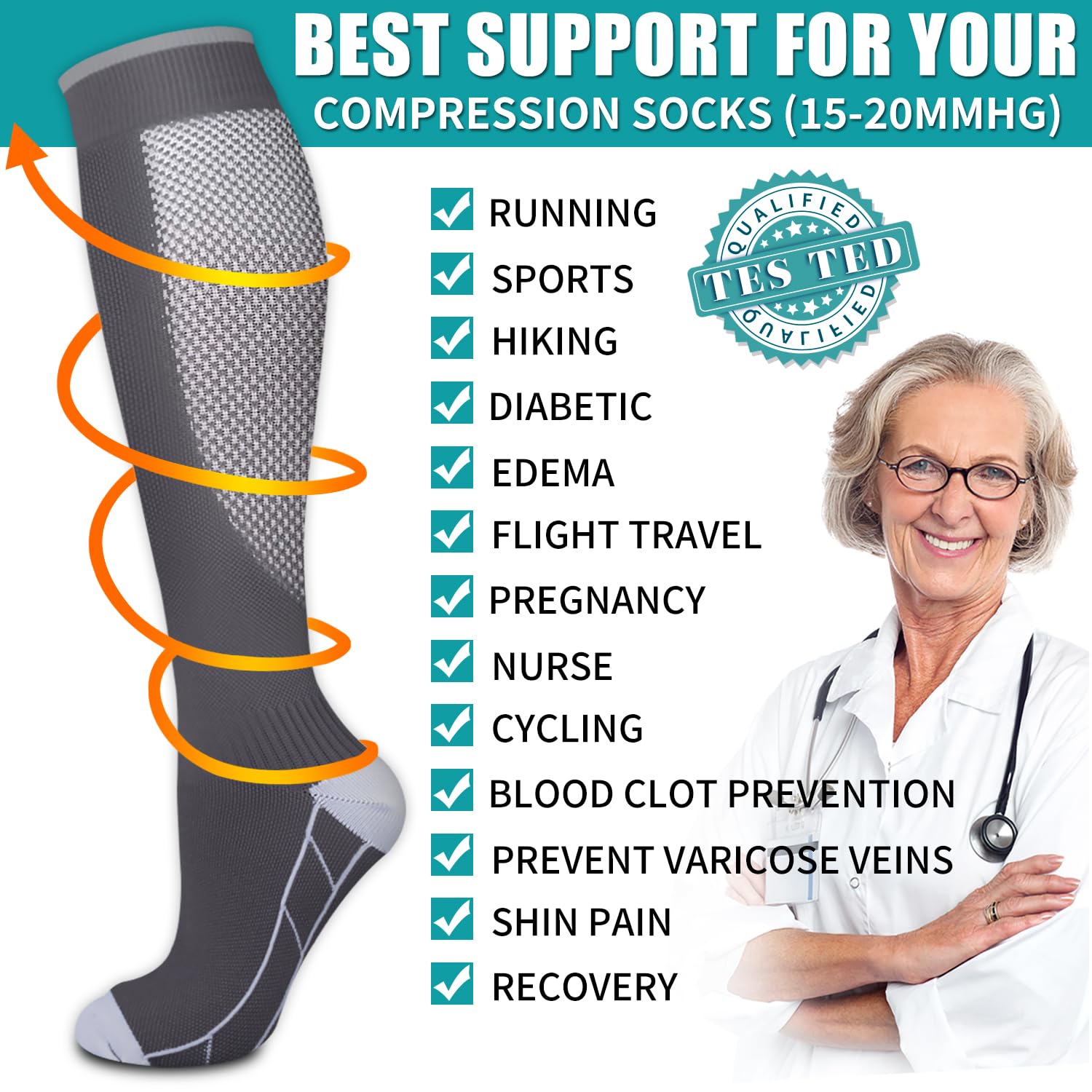 UPGRADE YOUR COMPRESSION SOCKS DRAWER! - With all the tasks of work and family (and of life itself!) we may forget to pay attention to and maintain the health of our legs. Our compression socks are designed to help increase circulation, improve leg and foot comfort, and reduce soreness and swelling, increase energy, All day comfort.Great for long periods of sitting or standing, endurance sports, flying and travel, post-workout recovery, pregnancy, and spider & varicose veins.
