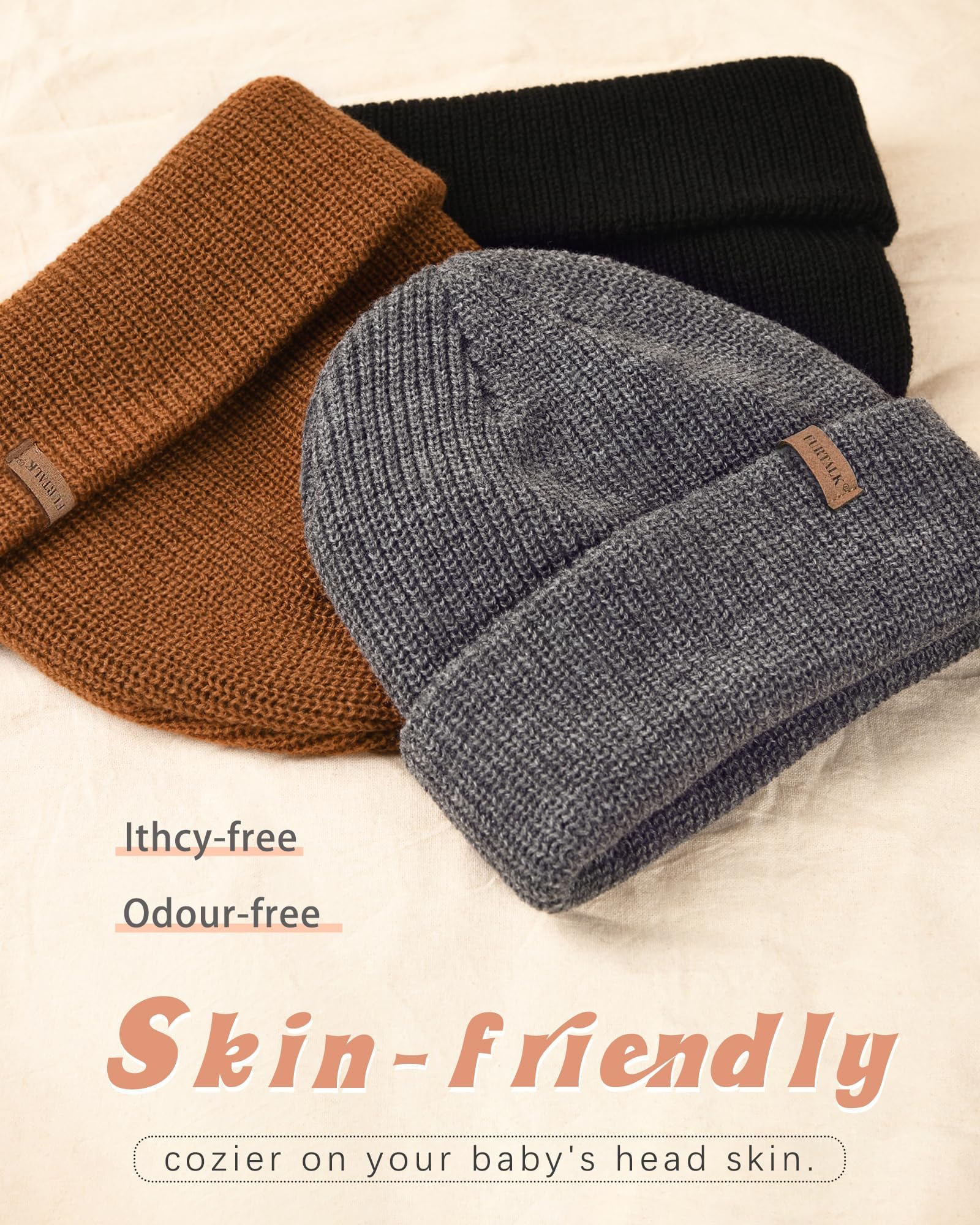 The toddler beanie hat is made of 100% super soft acrylic,cozy and isnβt itchy;The baby winter hat with double layer design for extra warmth and comfort,it can keep your baby's head warm in winter even in Northwest New York;