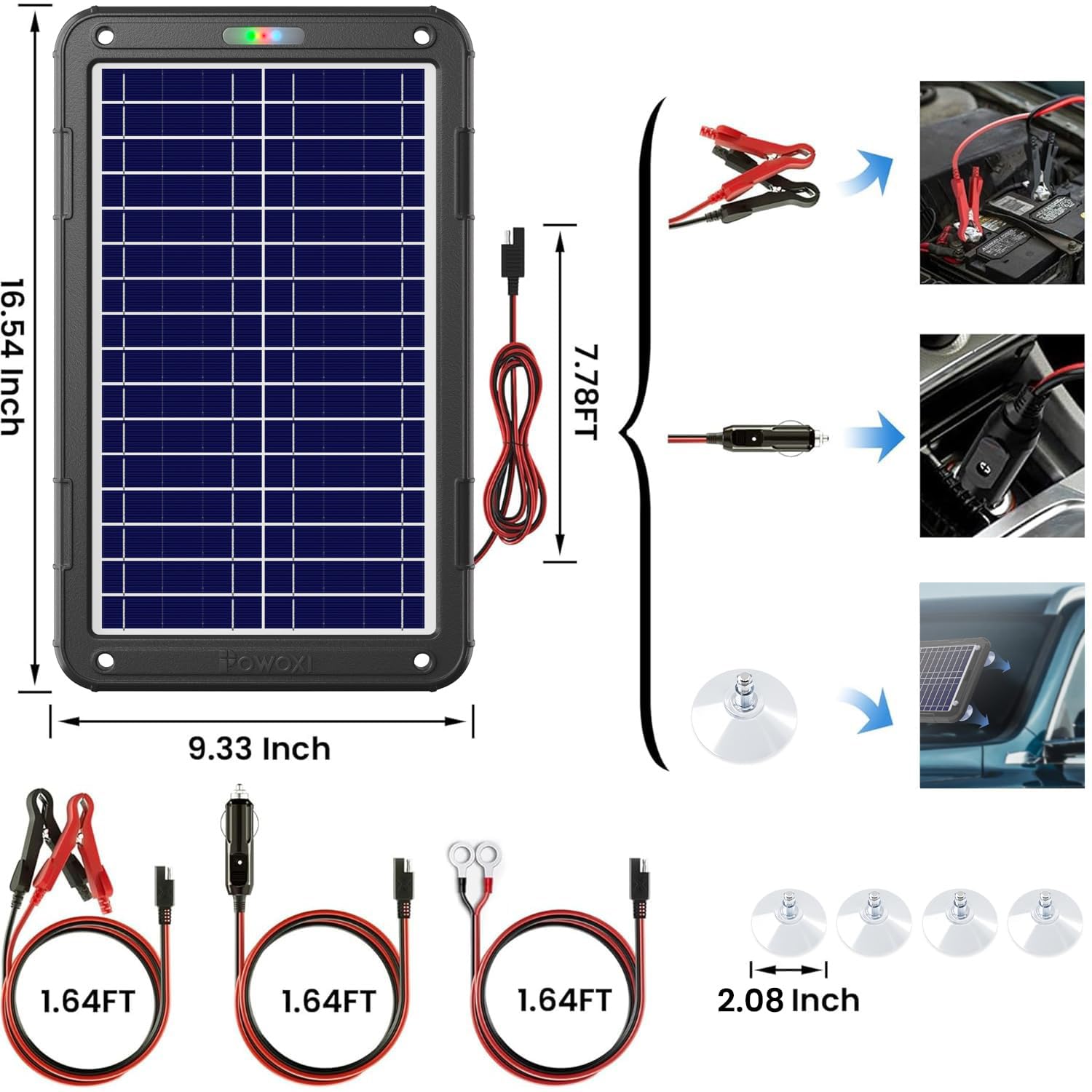 Easy to Install and Use: The solar battery maintainer is easy to install, and convenient to use, just insert it in the car power outlet, as known as the cigar lighter socket or connect the solar panel to the battery with the alligator clips directly