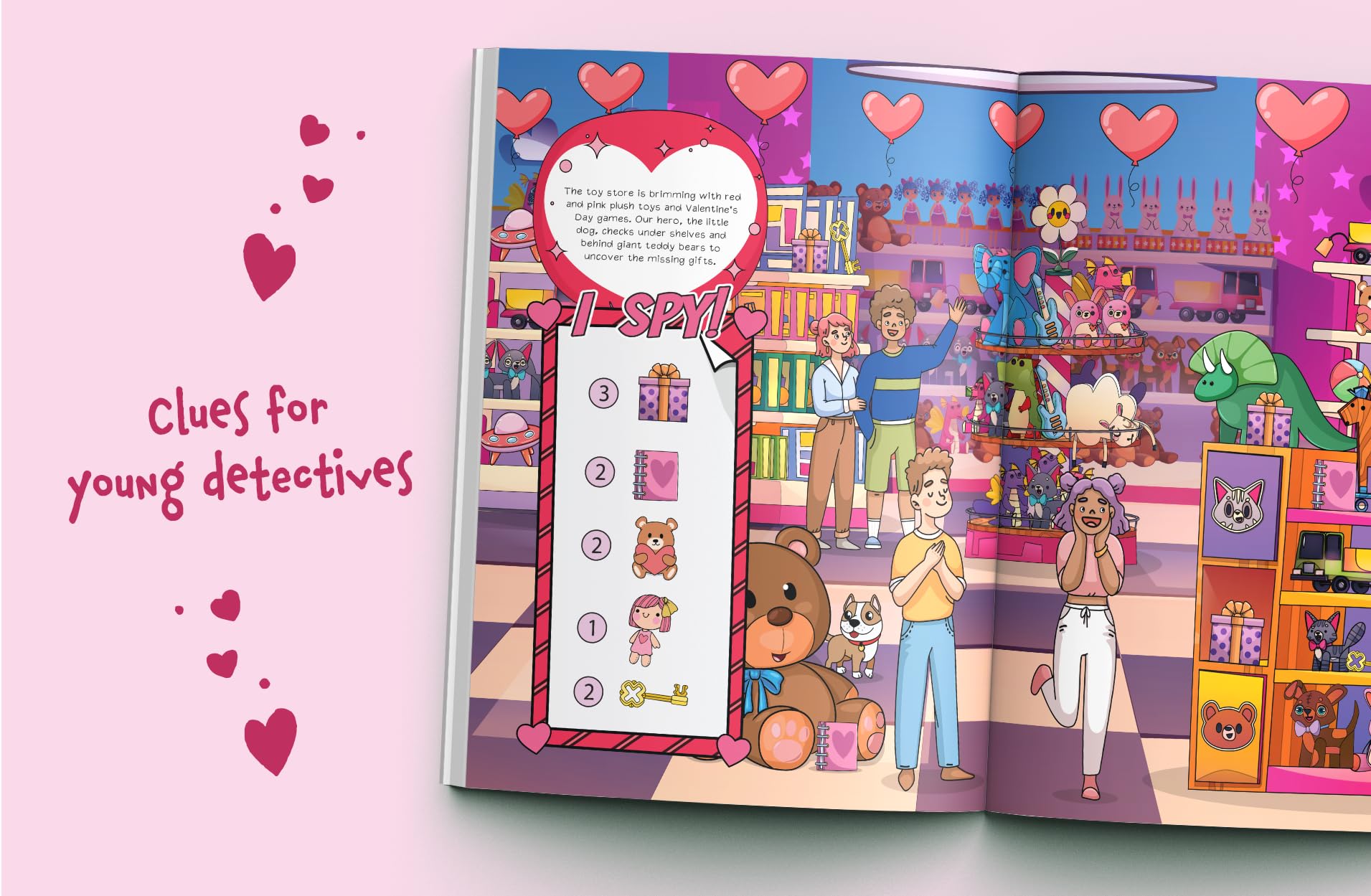 🚨Alert: The Valentine’s Day Gifts are Gone! Is Your Child Ready to Find Them? 💖 It's time for your child to go on a heartwarming adventure to find the missing Valentine's gifts! 💌 Watch them become a hero as they help save Valentine's Day, finding hidden presents 🎁 in lots of engaging I Spy images. 🔎 Why Choose This I Spy Book? 💝 Perfect Valentine’s Gift for Kids: Looking for a unique Valentine’s Day gift for your toddler? Look no further! This I Spy book is ideal for making your child's Valentine truly special. 📸 Create Lasting Memories: Watch your child's face light up as they spot all the hidden gifts, creating wonderful memories. 🔎 High Replay Value: Highly detailed I Spy images and additional images for coloring ensure lasting fun for ages 2-6. 👪 Quality Family Time: This book offers great fun for the entire family and a wonderful opportunity to spend quality time together. 🎈 Playful Learning: Playfully boost your child's concentration and attention skills with our colorful, kid-friendly picture riddles. No reading required! This isn't just another I Spy book – it's a cute and unique journey across 40 beautiful pages, with your kid in the leading role. 🌟 Don't miss out on this exceptional I Spy adventure. Click “Buy Now” in the top-right corner and look forward to the sparkling eyes of your child! ✨