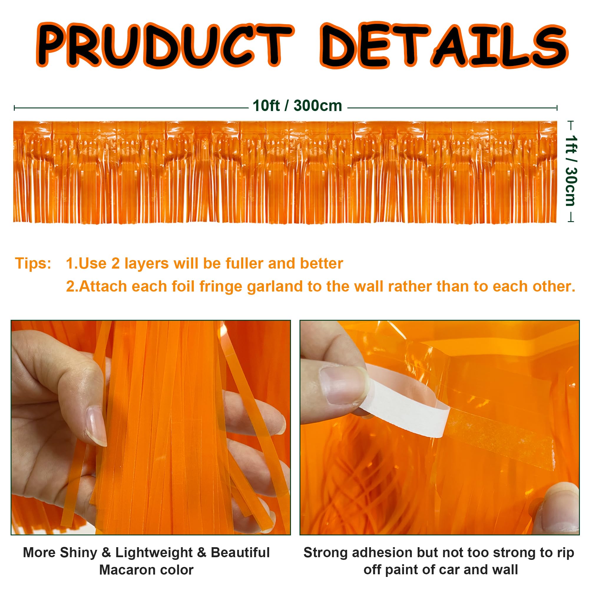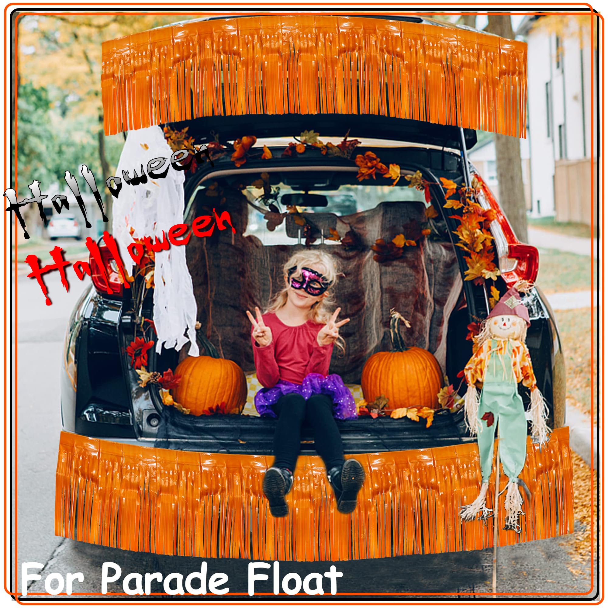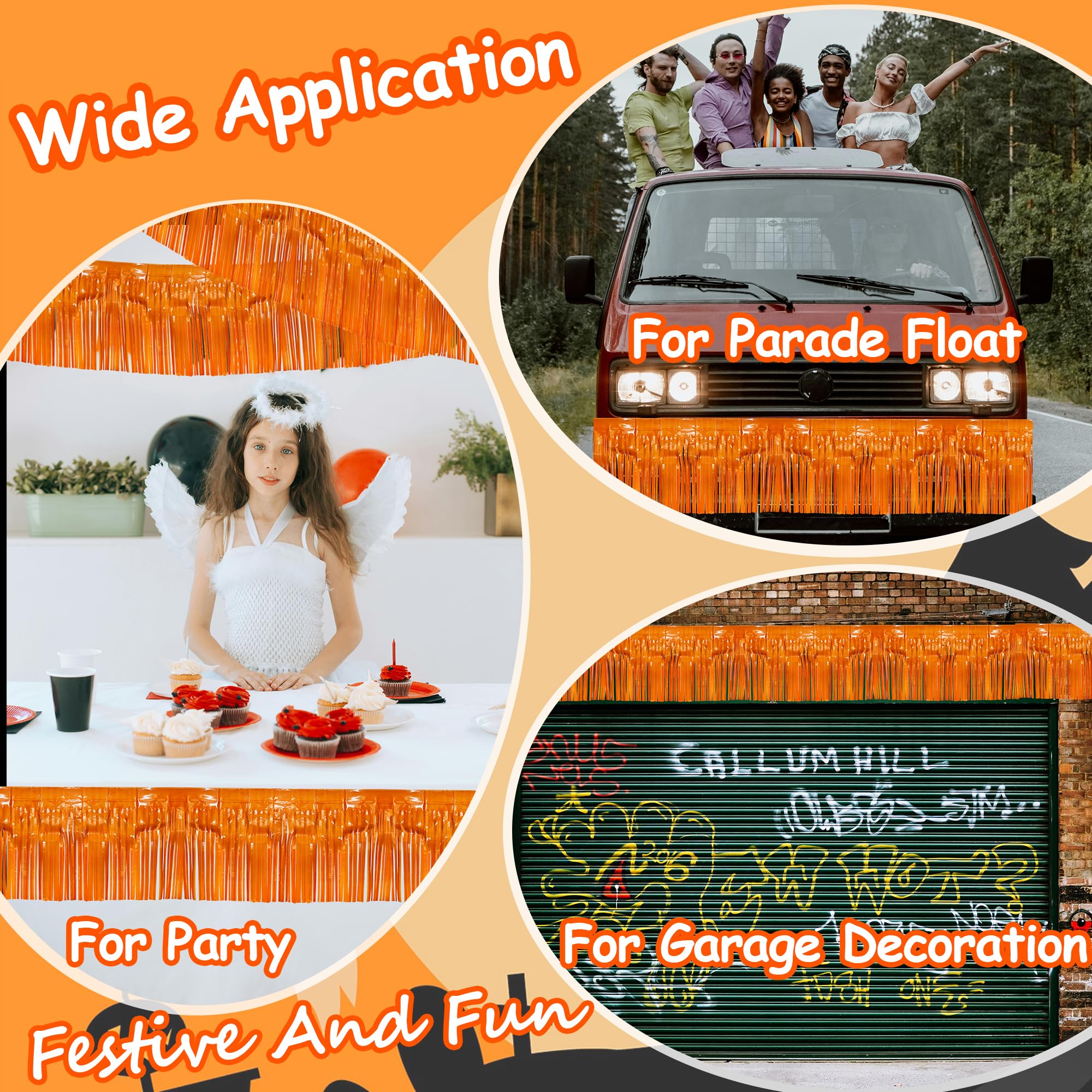 【PACKAGE INCLUDES】Comes with 4 packs of Orange foil, 10*1 ft/3*0.3m (L*W ), You can cut it into any size to meet your decoration needs. If you want parade float decoration to be colorful, fuller, thicker and looks better, it is better to use more than 2 packs of fringe float overlapping together. And tape each foil fringe garland on the car/wall, not on top of each other. With these festive metallic streamers, you can take your parade float decorations to the next level.