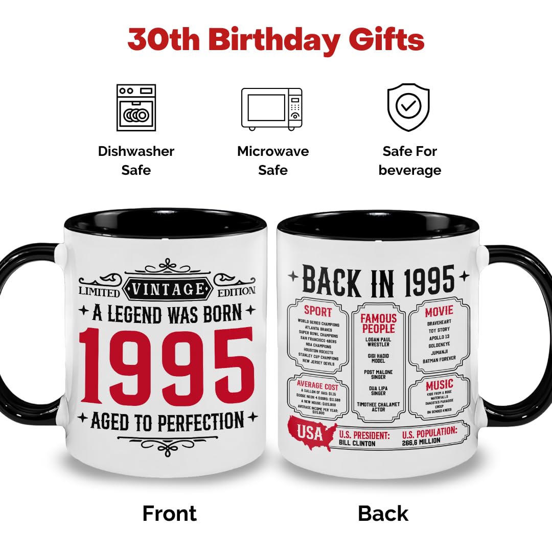 Unique Milestone Gift: Celebrate a legend born in 1995 with this retro-styled mug, perfect for birthdays, anniversaries, or milestone celebrations, the perfect choice for 30 year old birthday gifts for men. Whether you're looking for 30 gift ideas, 30 year old gifts for men, or unique gifts for men 30 years old, this mug is a thoughtful and nostalgic option. It also makes a memorable addition to 30 gifts for 30th birthday for him or as one of the best 30th birthday cups to mark the occasion.