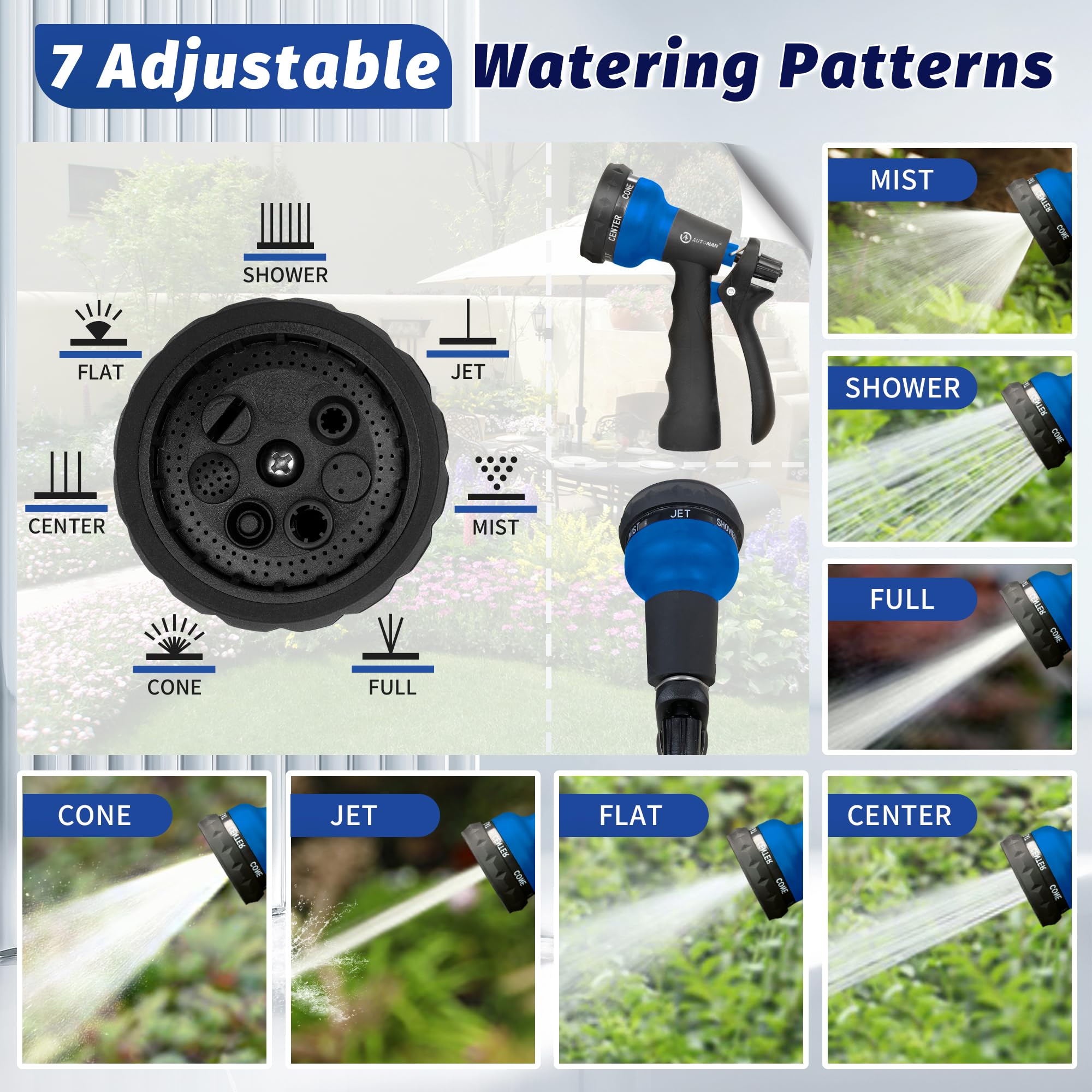 7 ADJUSTABLE WATERING PATTERNS: Each carefully selected pattern has an unique purpose,and each spray pattern will meet all of your watering needs.To change patterns simply twist the nozzle.Turn the spray nozzle dial to choose appropriate pattern to satisfy all your watering needs.