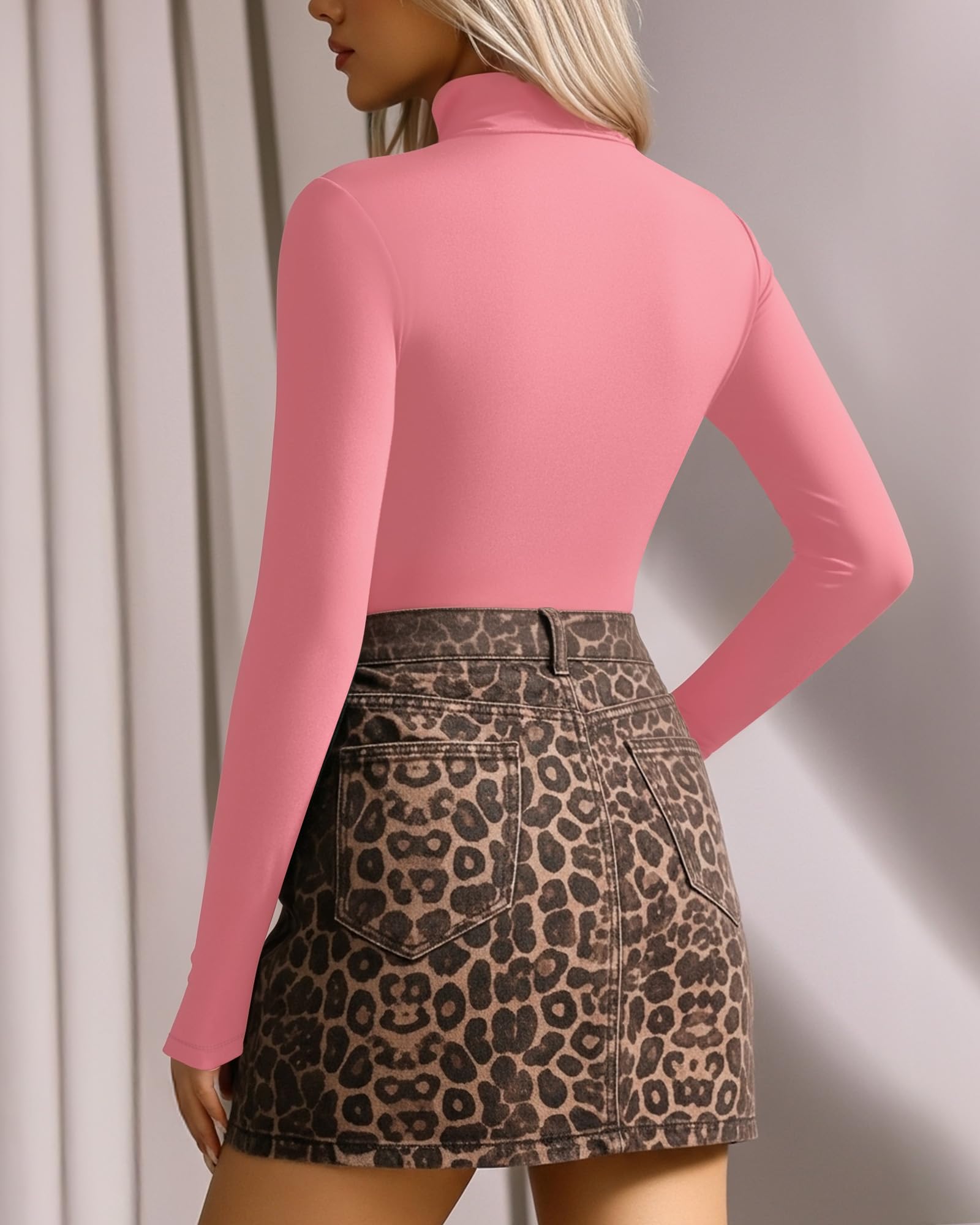 Versatile Style: Women's mock neck bodysuit is comfortable and versatile, easily paired with pants, shorts, or skirts to enhance your look. It features two snap buttons at the bottom for convenient wear.