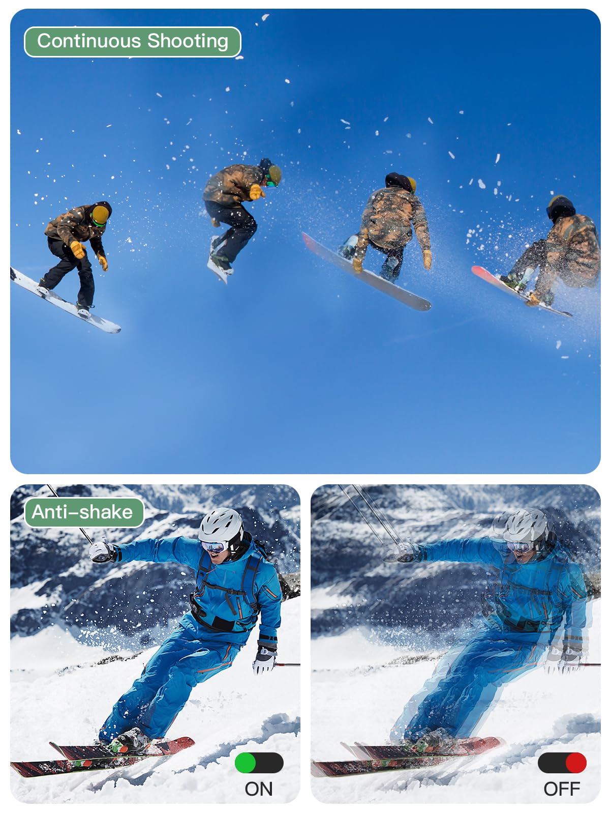 【Small but Powerful】This kids camera supports 16x digital zoom.Plus, this small camera is also equipped with many features such as anti-shake, face recognition, smile detection, continuous shooting, self-timer, time stamp ON/OFF, making this the perfect camera for all indoors/outdoors situations. And it’s easy to operate, just press the shutter button fully to take pictures.