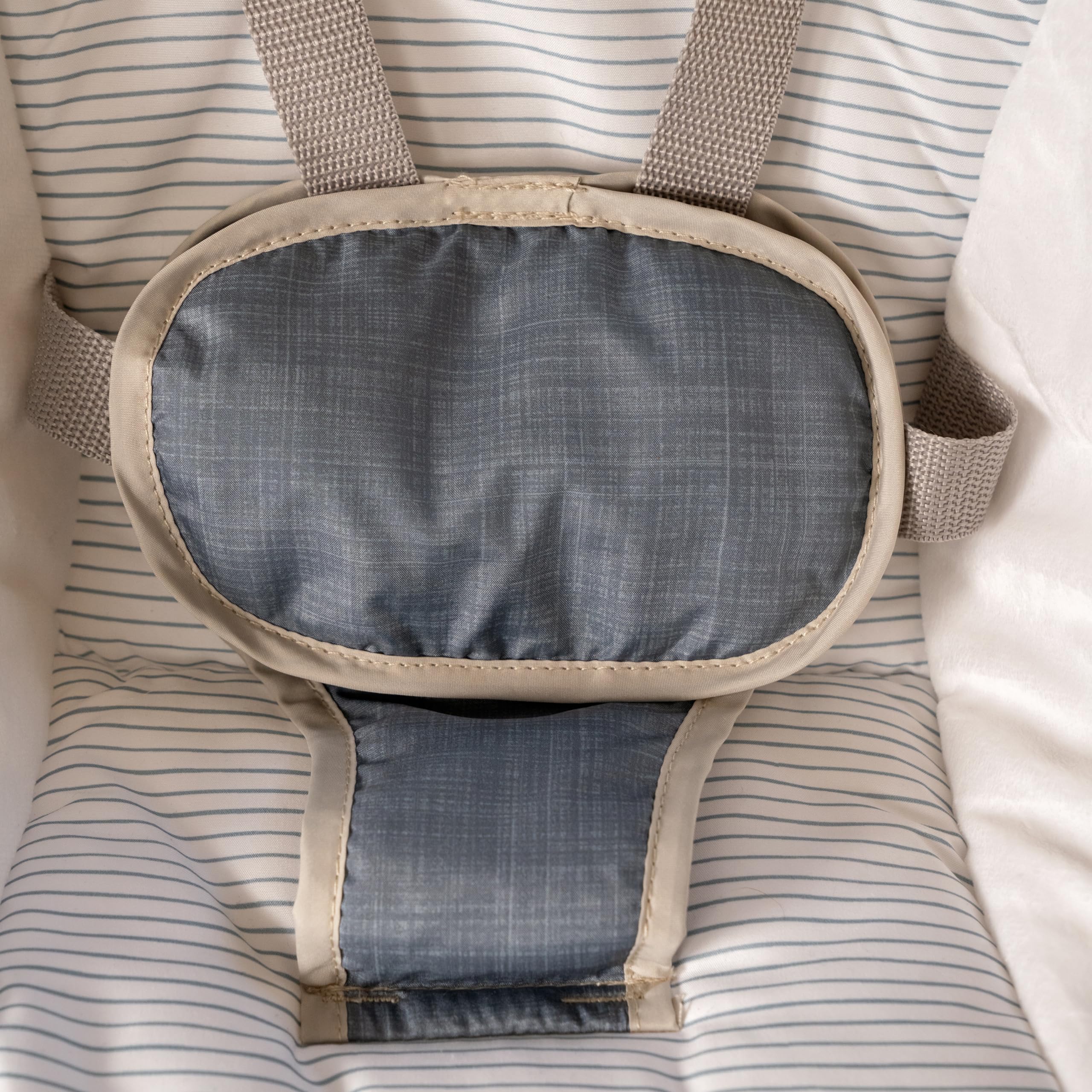 The swing is foldable for easy storage. The seat includes a 5-point harness to keep baby safely secure. Seat pad and headrest are removable for convenient cleaning; for ages 0-9 months or up to 20 pounds, whichever comes first