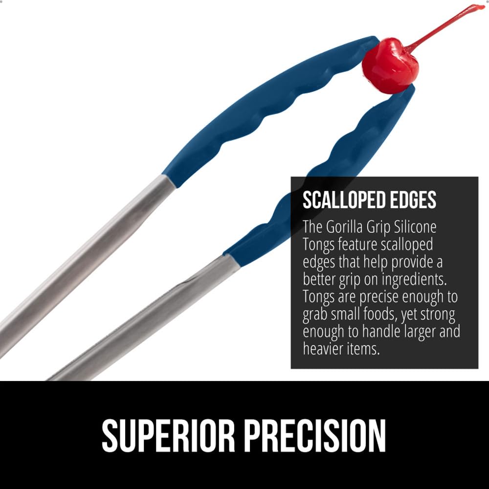A STRONG AND PRECISE GRAB: featuring silicone scalloped edges, these tongs can grab nearly anything; from small ingredients like cherries, to large pieces of meats, veggies and more, the tongs are incredibly durable and strong enough for a variety of ingredients