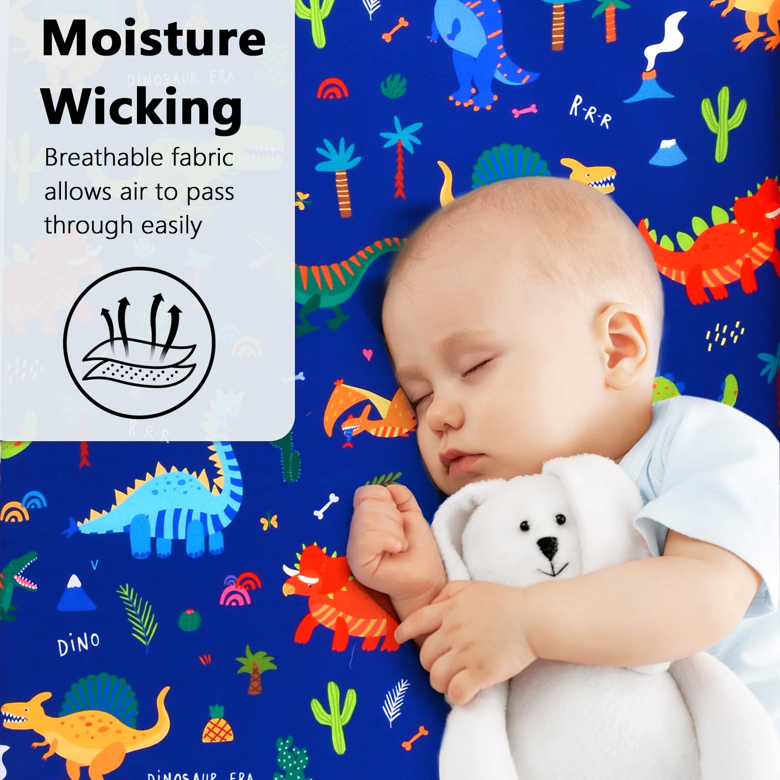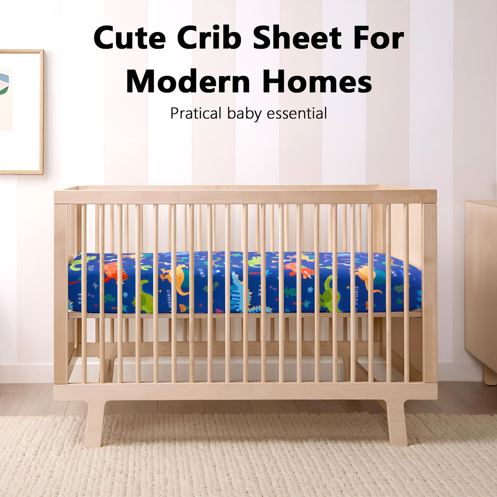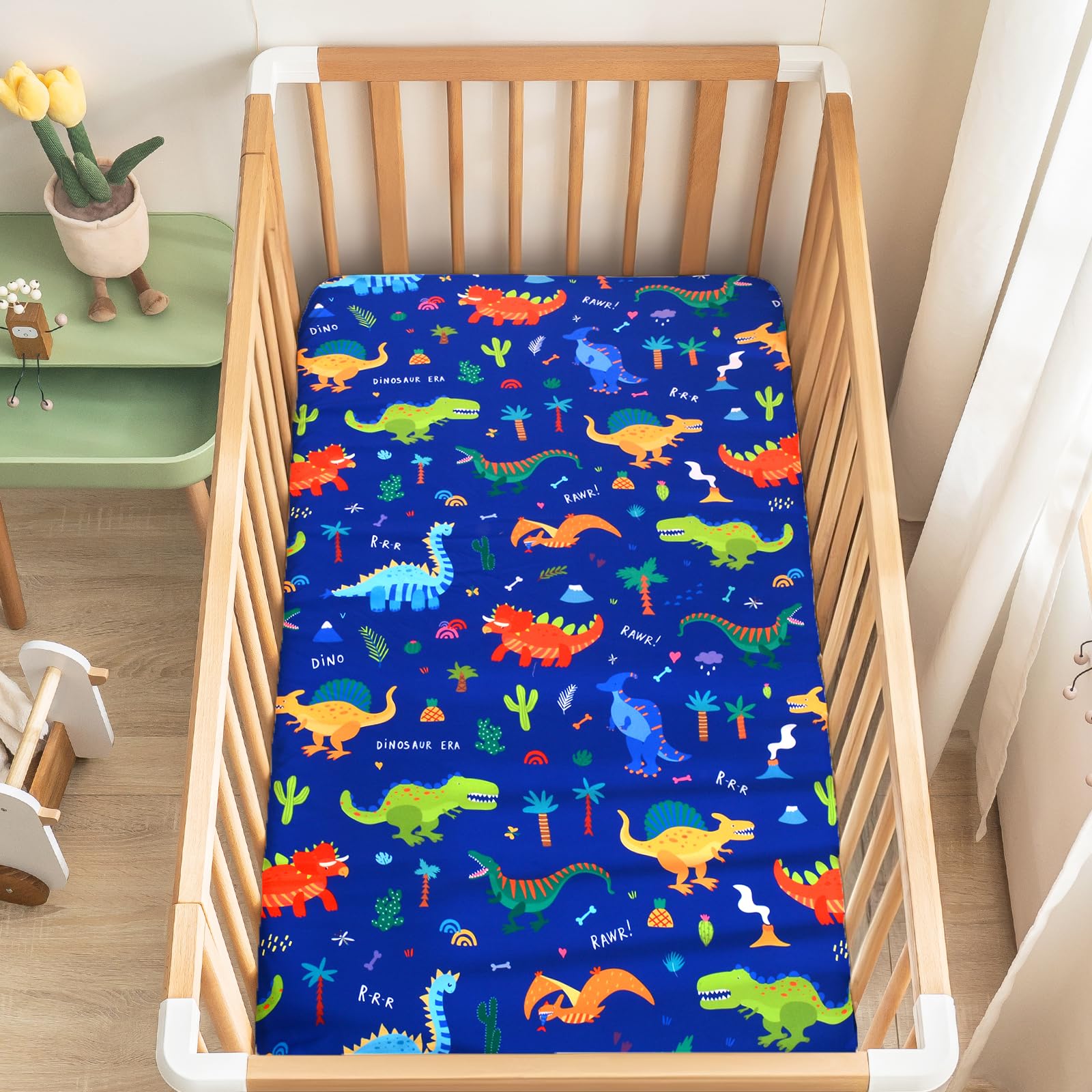 【Adorable Dinosaur Design Kids Love】: Featuring vibrant dinosaur patterns on a classic blue background, this crib sheet adds a playful touch to your nursery. The included matching pillowcase completes the look, making it a favorite for both parents and toddlers.