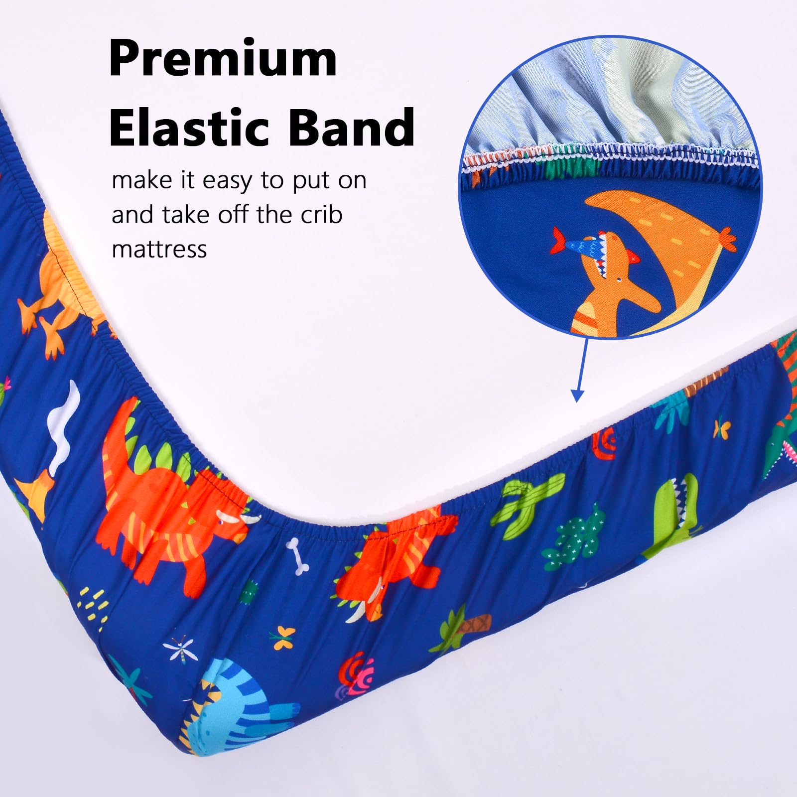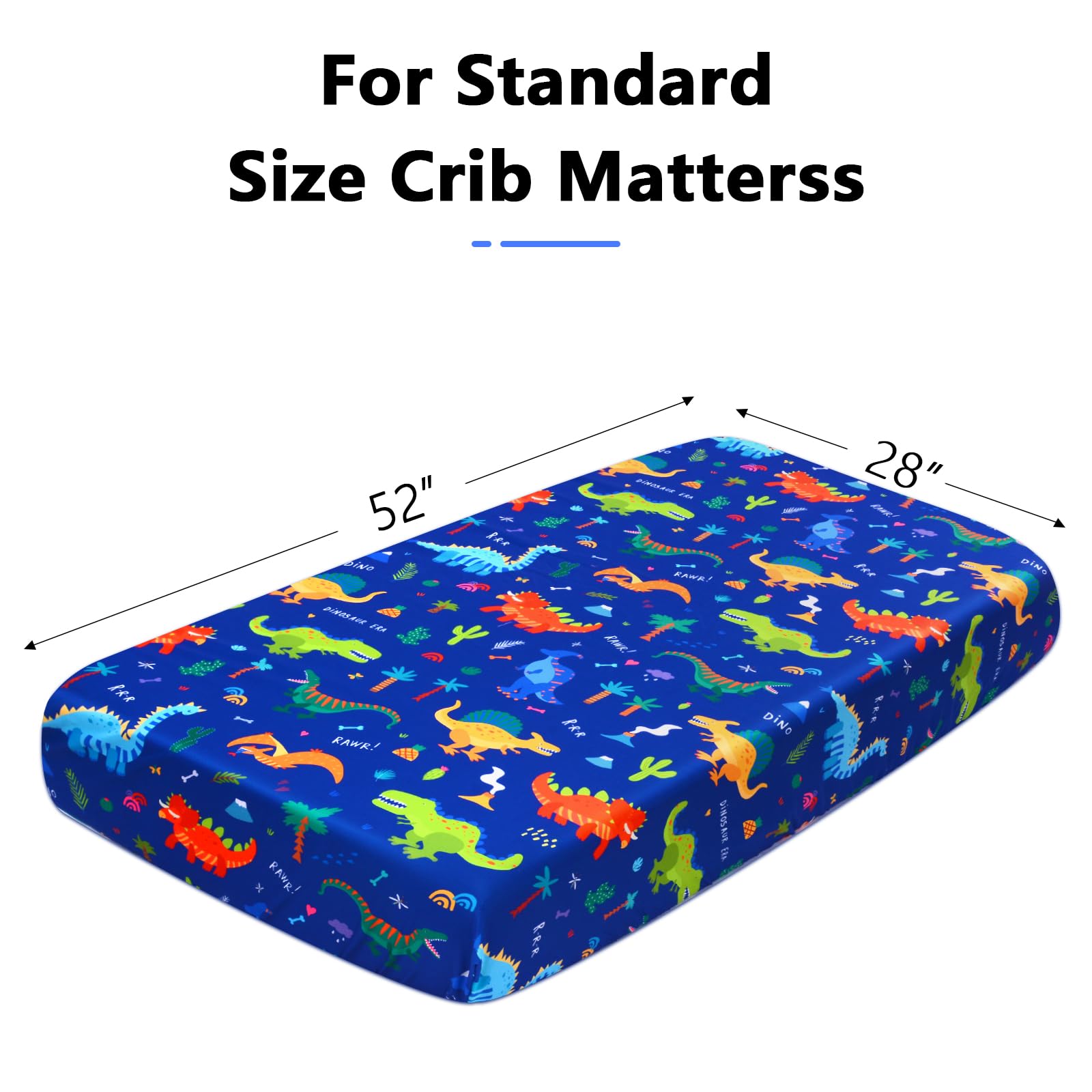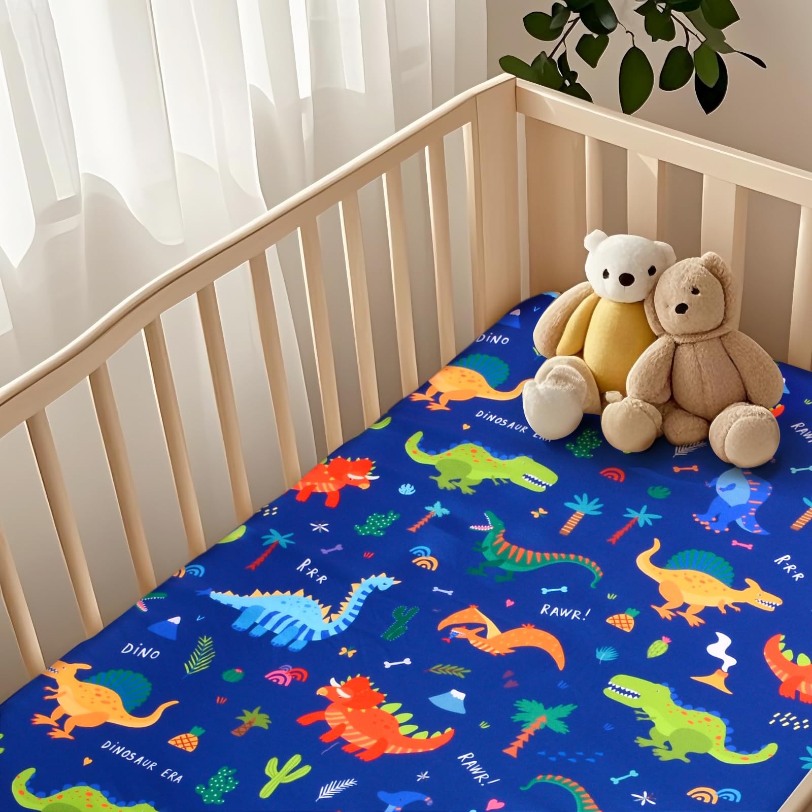 【Adorable Dinosaur Design Kids Love】: Featuring vibrant dinosaur patterns on a classic blue background, this crib sheet adds a playful touch to your nursery. The included matching pillowcase completes the look, making it a favorite for both parents and toddlers.
