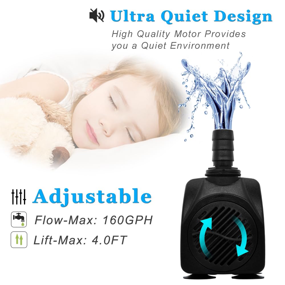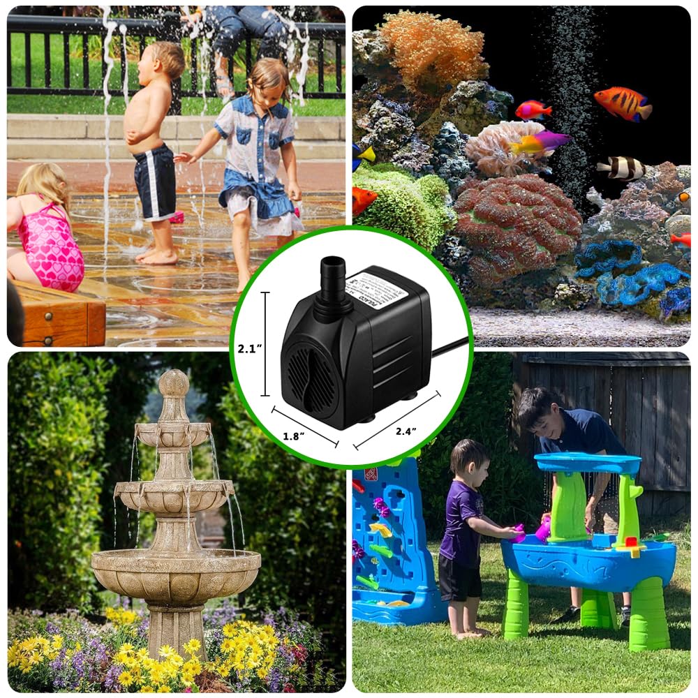 Multi Function: Pumps can help you to circulating your aquarium, and creat a nature aqua world for the fishes. Our pumps can continuously supply stable flow, a good choice for medium fish tanks, small pond, fountains, water spring artworks, garden, aquaponic, aquaculture and many more.