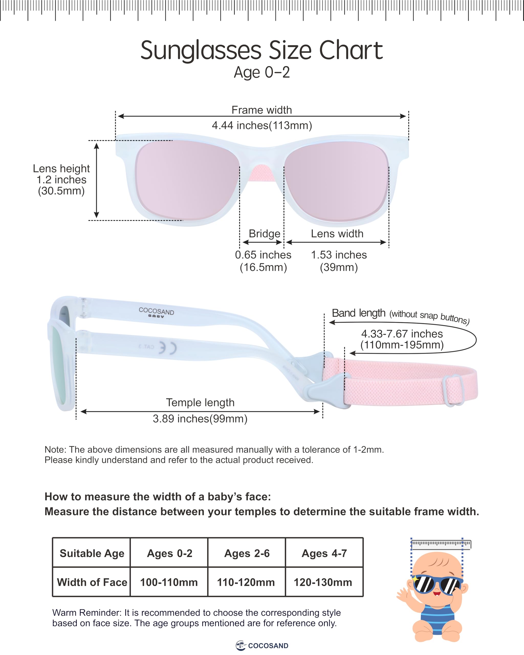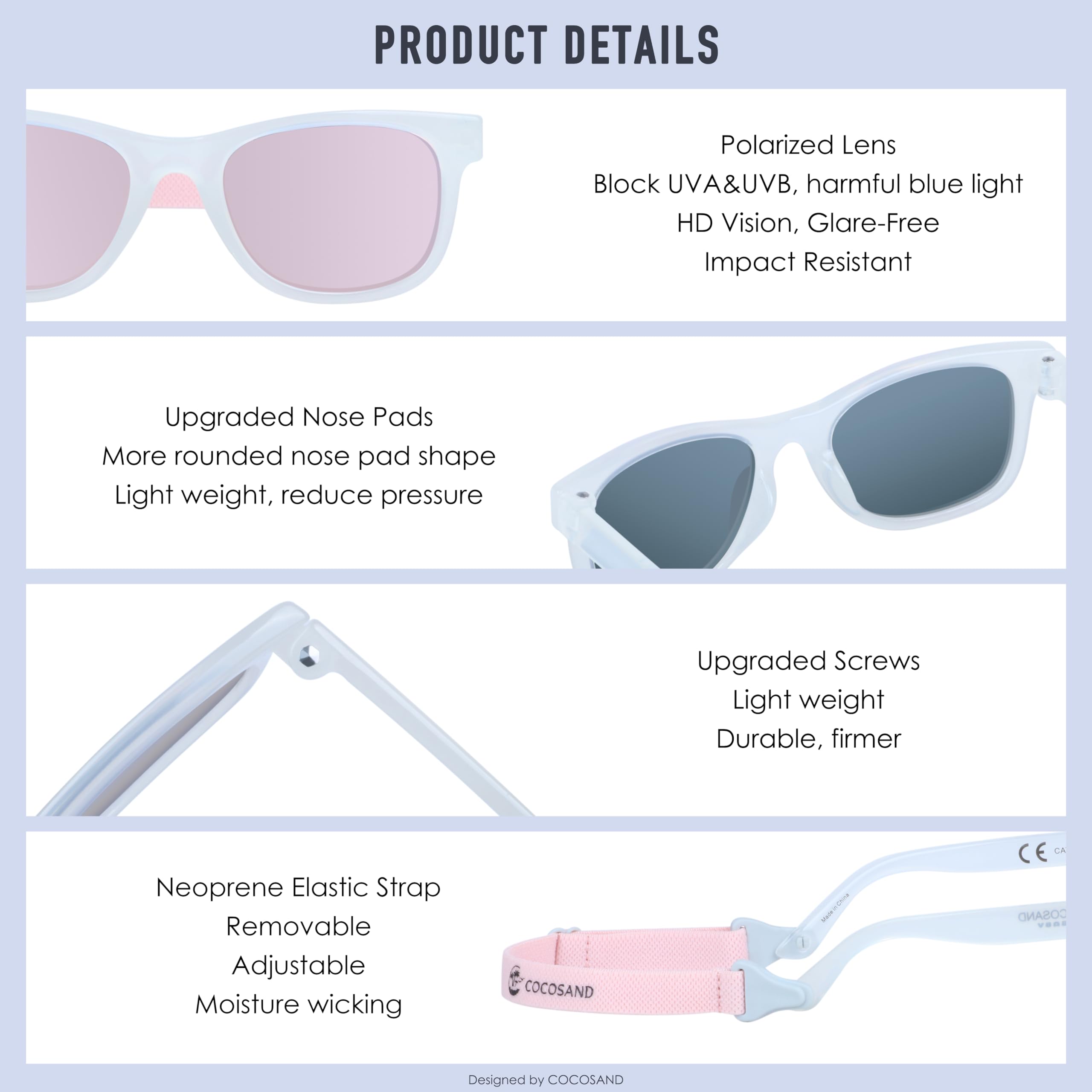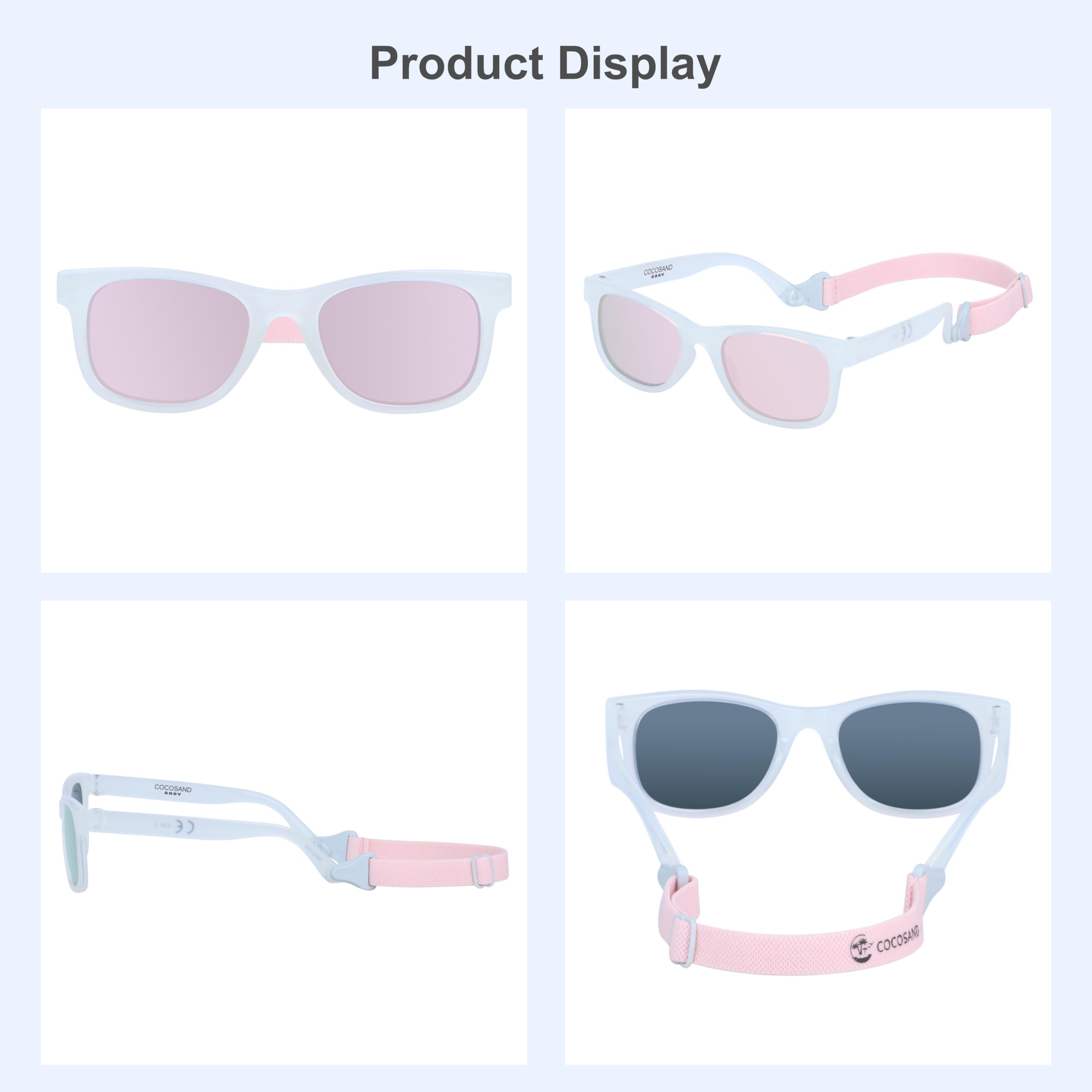 COCOSAND Flexible Polarized Baby Sunglasses with Strap UV Protection for Toddler Infant Newborn Girl Boy Age 0-24 Months, Transparent with Rose Lens