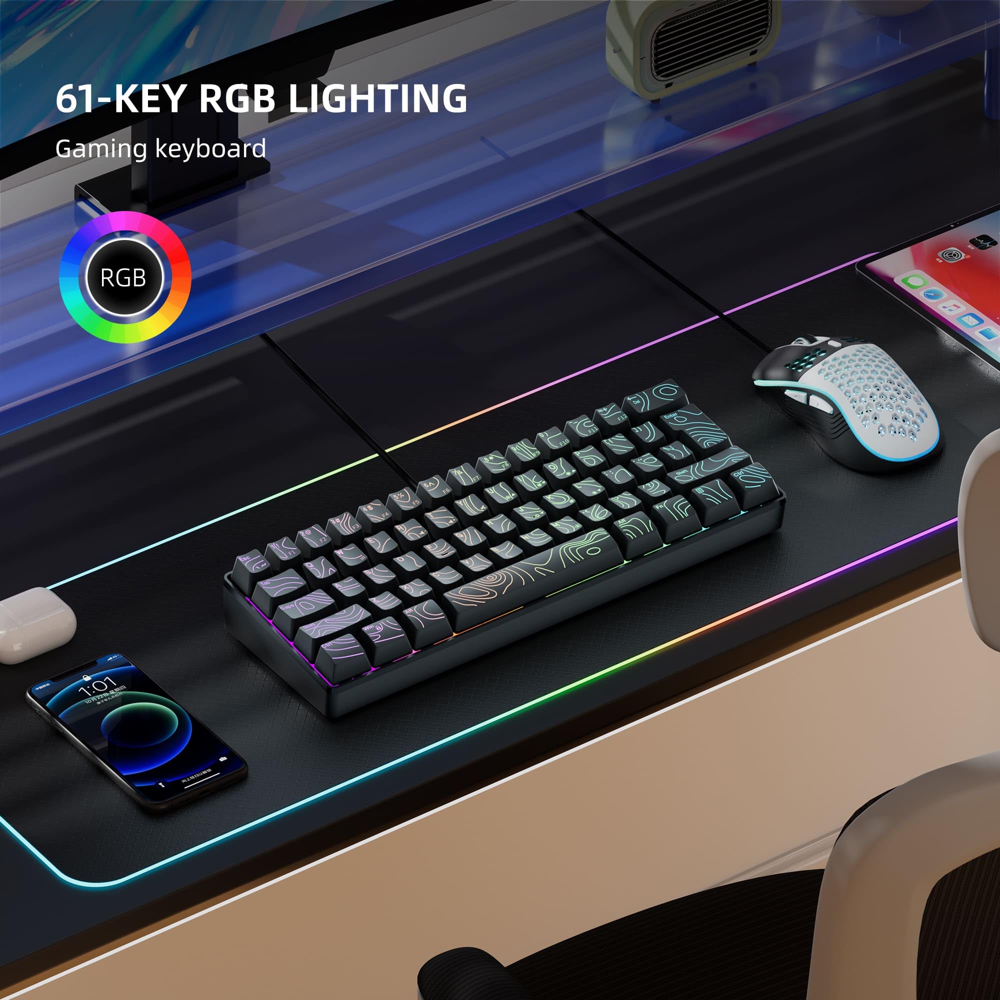 61-Key Minimalist Premium Layout: Minimalist living makes us feel more relaxed and easy, the same way a minimalist keyboard can make the desktop more spacious and comfortable. 61-key black and white keyboard deserves to be yours.