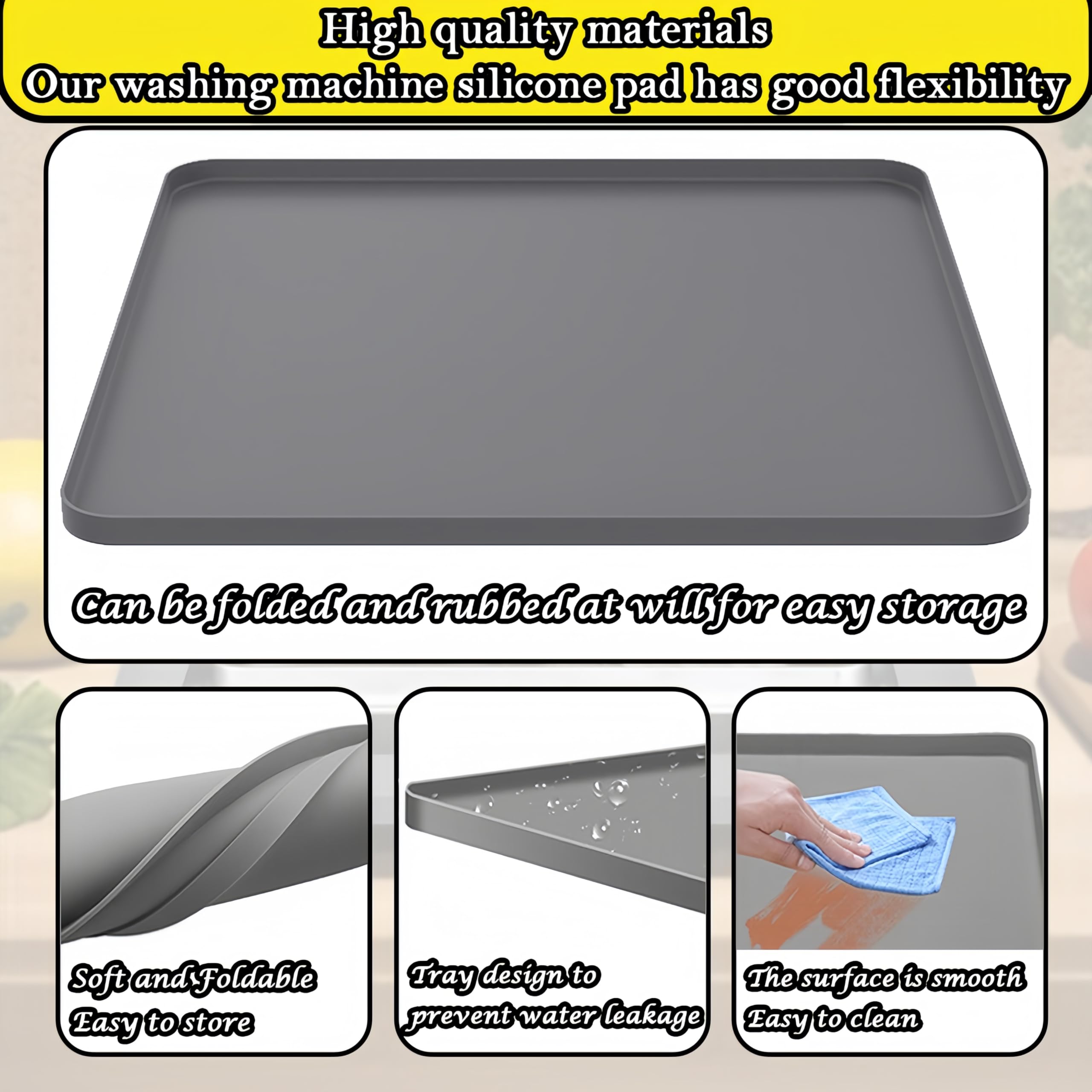 High Quality Material: "Please be sure to measure the size of washing machine before purchasing to ensure it fits". Our Washing machine silicone pad mat has good flexibility, can be folded and rubbed at will for easy storage. Silicone material is heat-resistant, even in high temperature conditions can ensure intact, it can fit perfectly on the top of the washing machine, and can also be used as a storage tray for various items