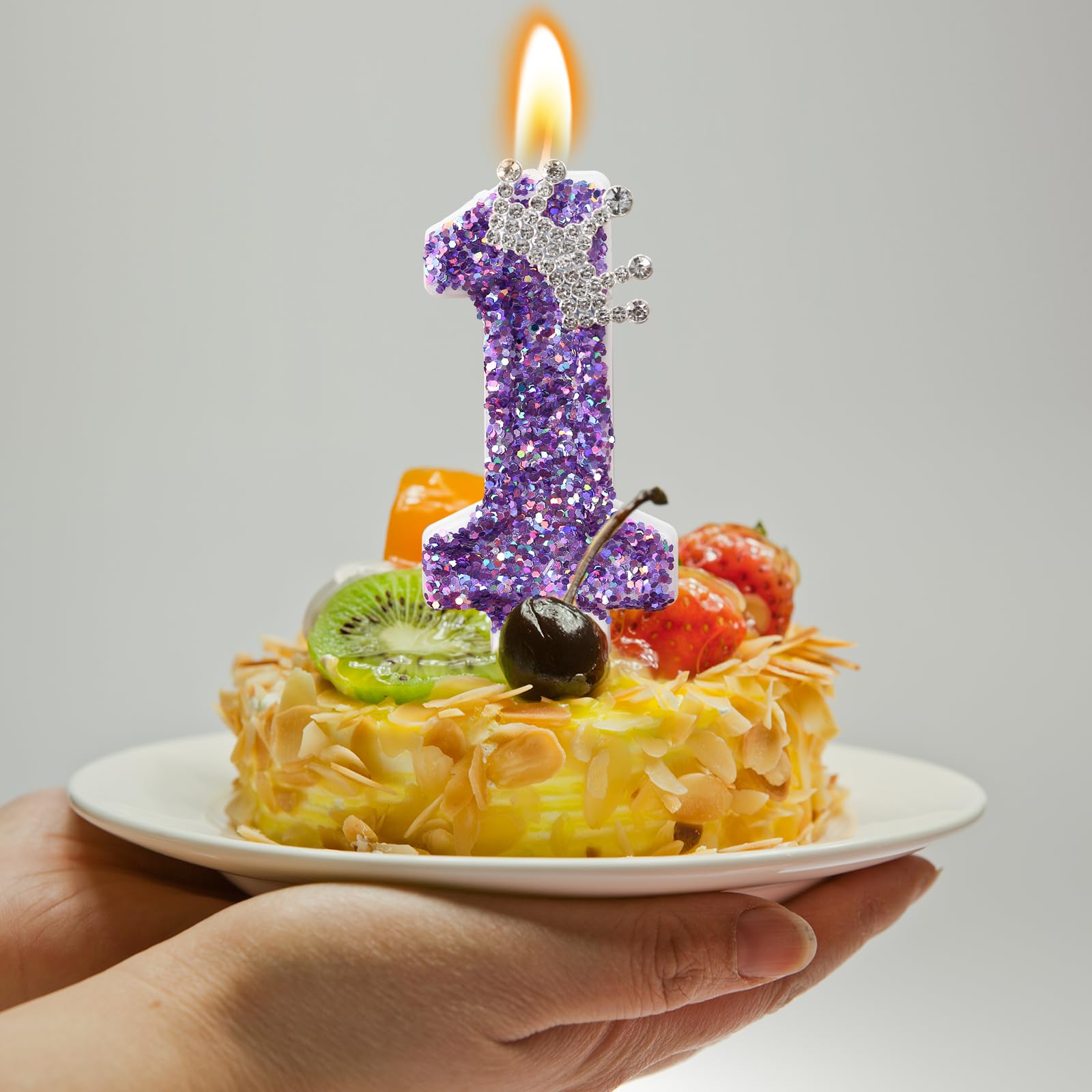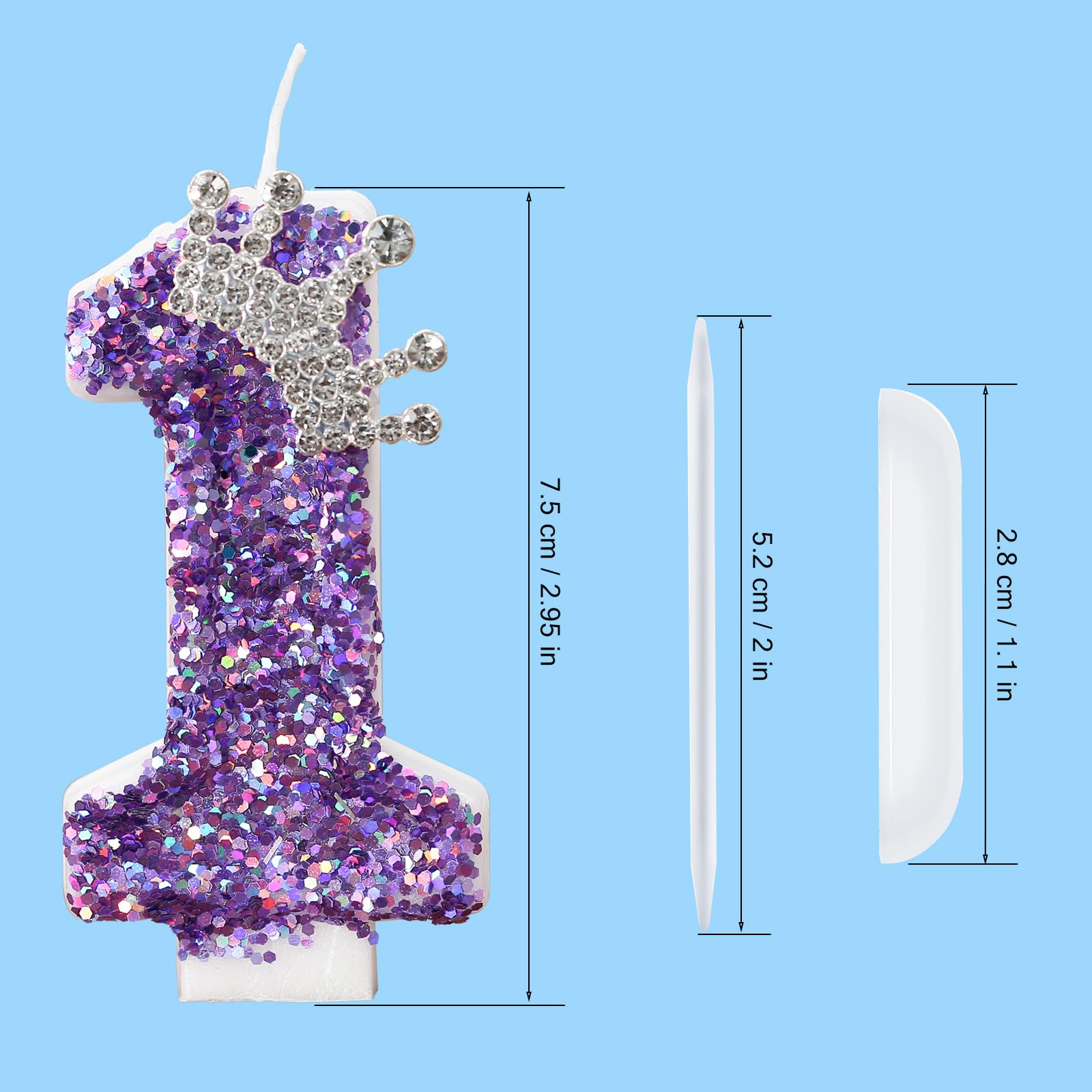 【Exquisite Appearance】This purple digital candle with crown decoration is beautifully crafted, the candle is inlaid with delicate sequins and crown jewelry, adding a touch of nobility and luxury to your party.