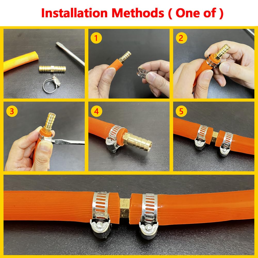 Packaging Includes:3 PCS Two-Ways Brass Hose Mender, 6 PCS Stainless steel pipe clamps.