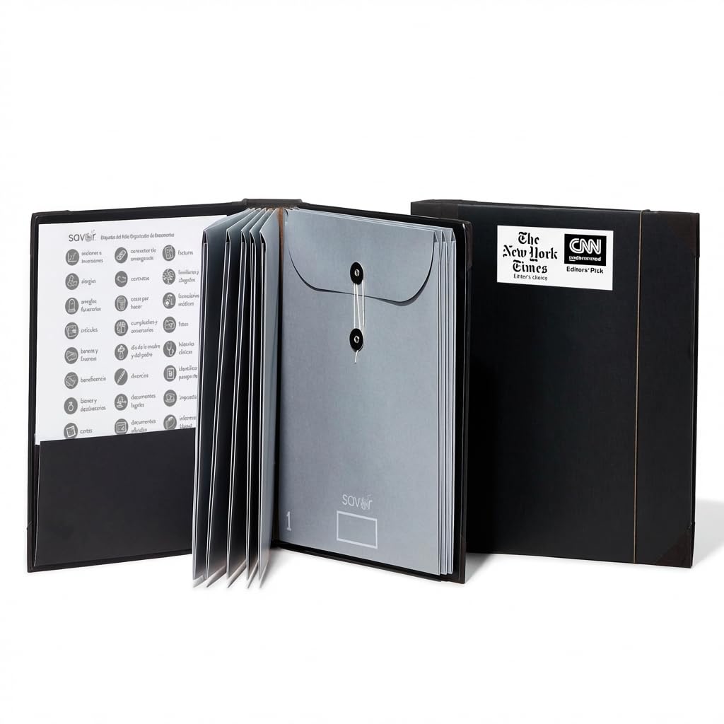 Un hogar para los papeles importantes: Perfecto para garantizar que la familia esté preparada en caso de emergencia; el libro ideal para zonas propensas a huracanes o tormentas. Esta es una carpeta «por si muero», pero también puede ser tu planificador financiero, o portadocumentos legales. El regalo de organización ideal para los recién casados; perfecto para almacenar registros médicos e impuestos. El Folio Organizador de Documentos le da un hogar a las cosas que más te importan.