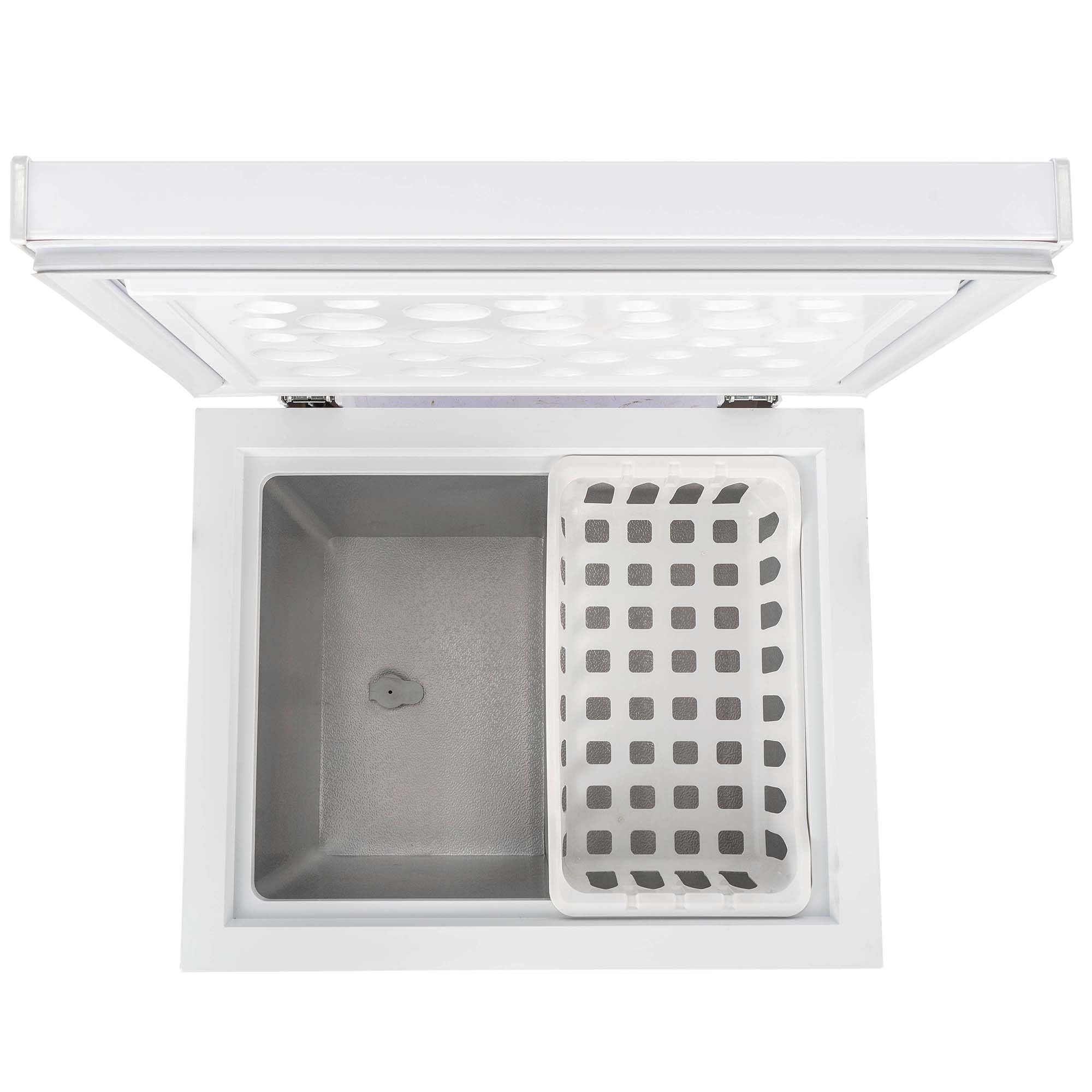 Everyone needs this freezer. How convenient would it be to store all your favorite frozen food in a large, well-built freezer? Most refrigerators just don't have enough freezer storage so why not invest in this chest freezer? It comes with an adjustable thermostat, a very important power indicator so you know when it's on or off and a removable vinyl coated wire basket for food storage. On top of that, it comes with an easy access defrost drain and a manual defrost. This freezer is perfect for a hunting or fishing cabin, your garage or basement.