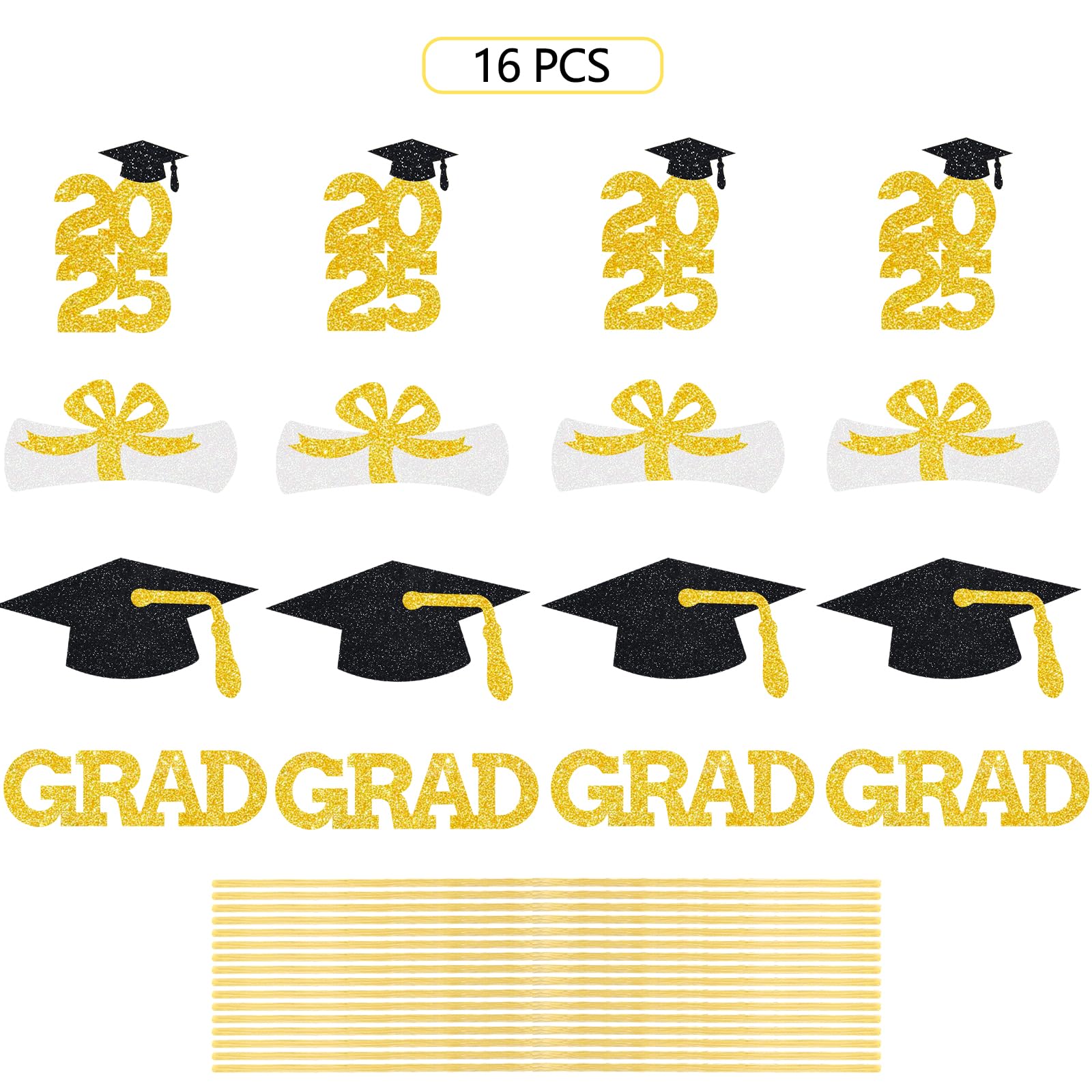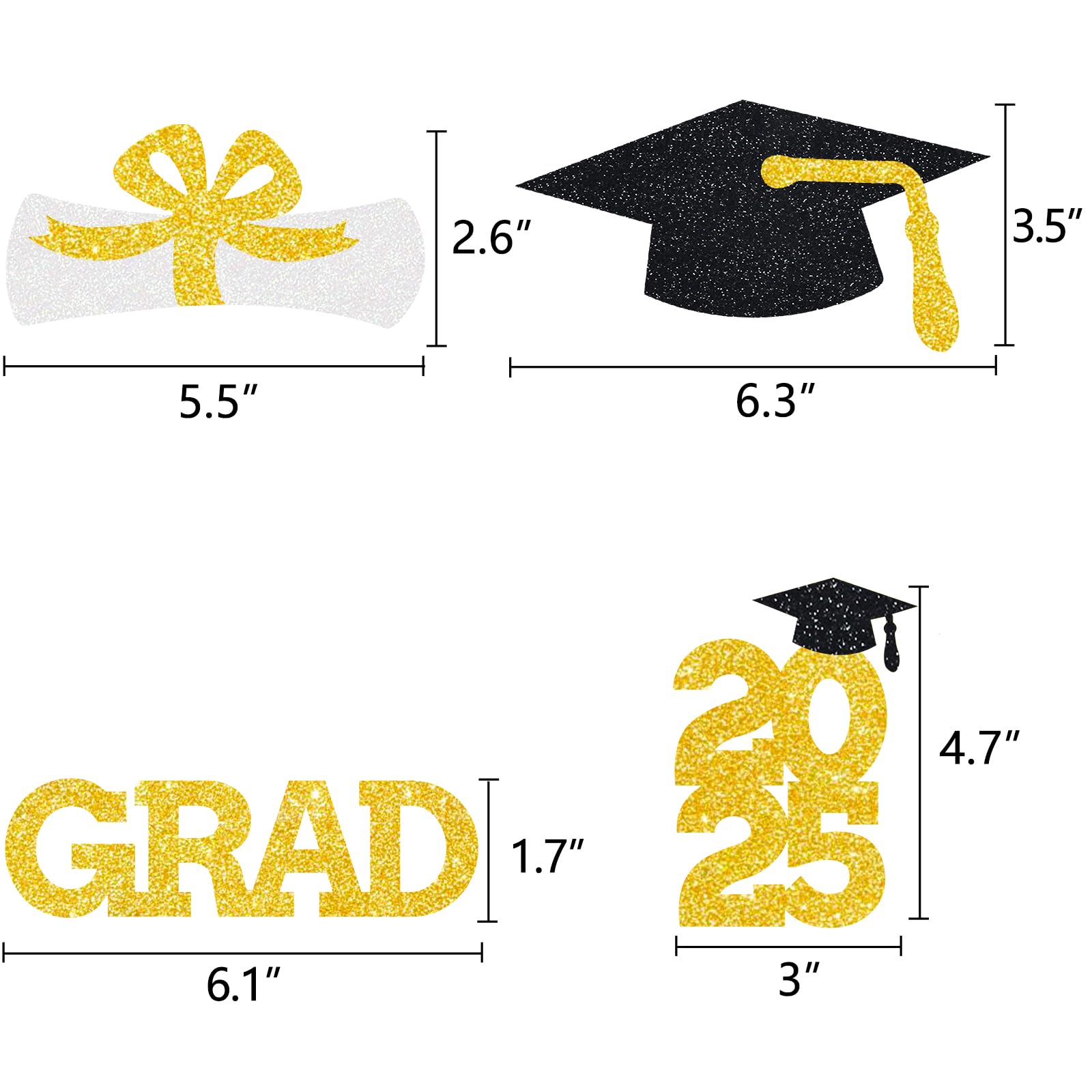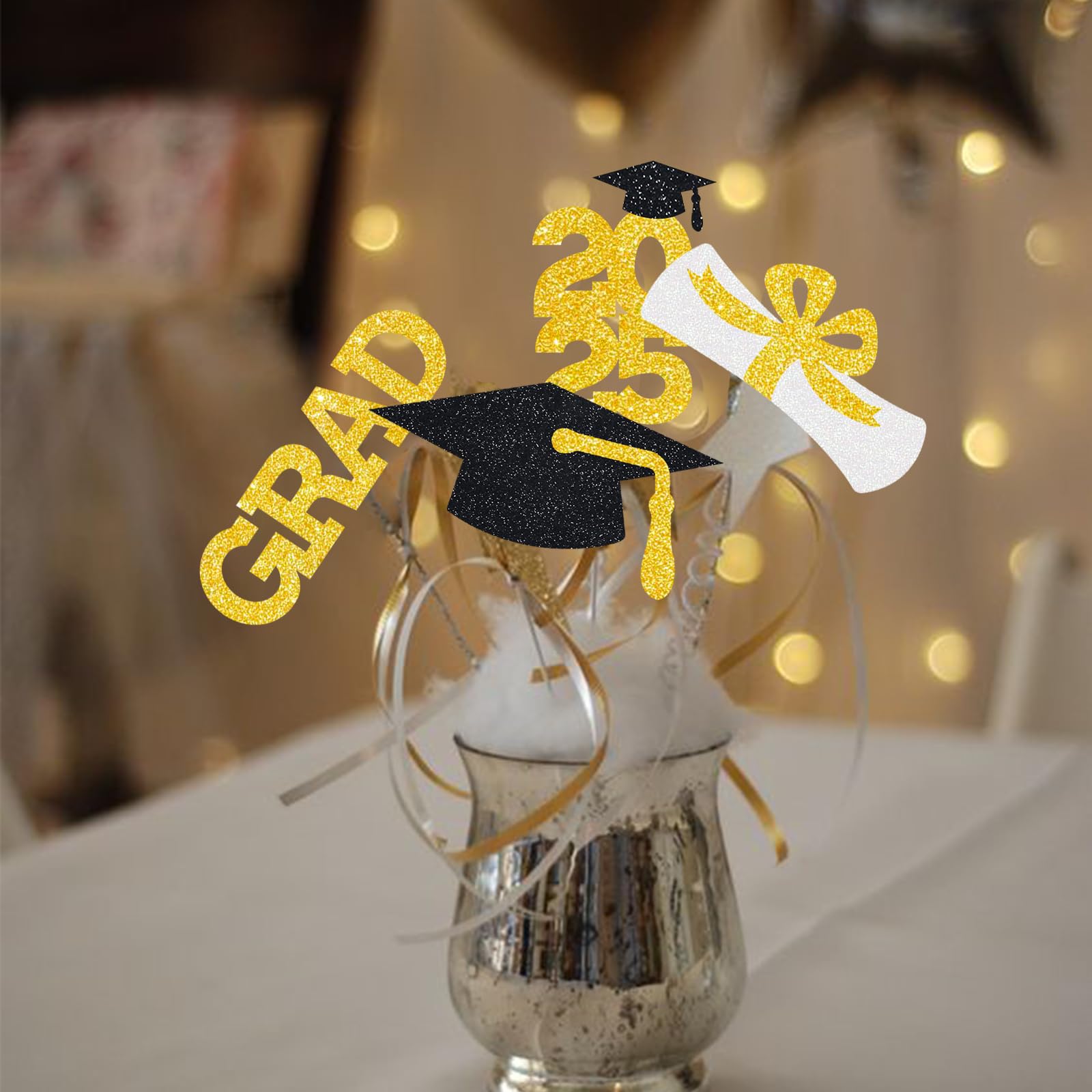 The gold graduation centerpiece sticks are made of glitter paper, thick and sturdy, you don’t worry about falling glitters everywhere! Perfect decoration for a 2025 Graduate party