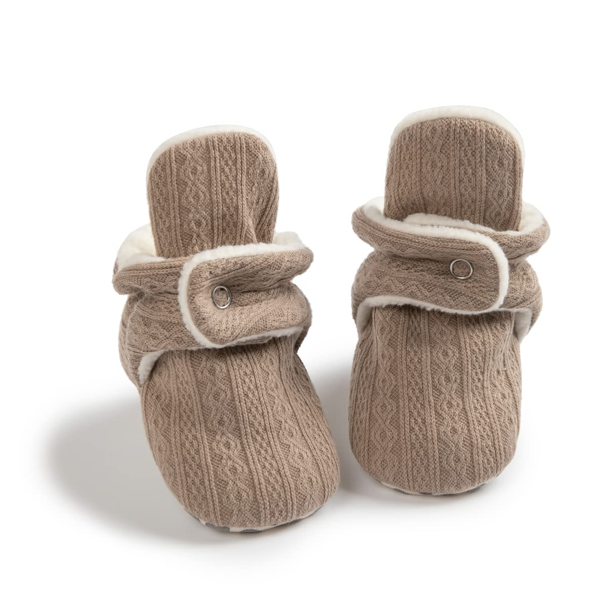 [STAY ON FOOT] The adjustable velcro booties with grippers stay on your baby’s feet with a comfy fit. These booties won’t get lost like baby socks as your little one plays when crawling on the floor or kicking in a stroller