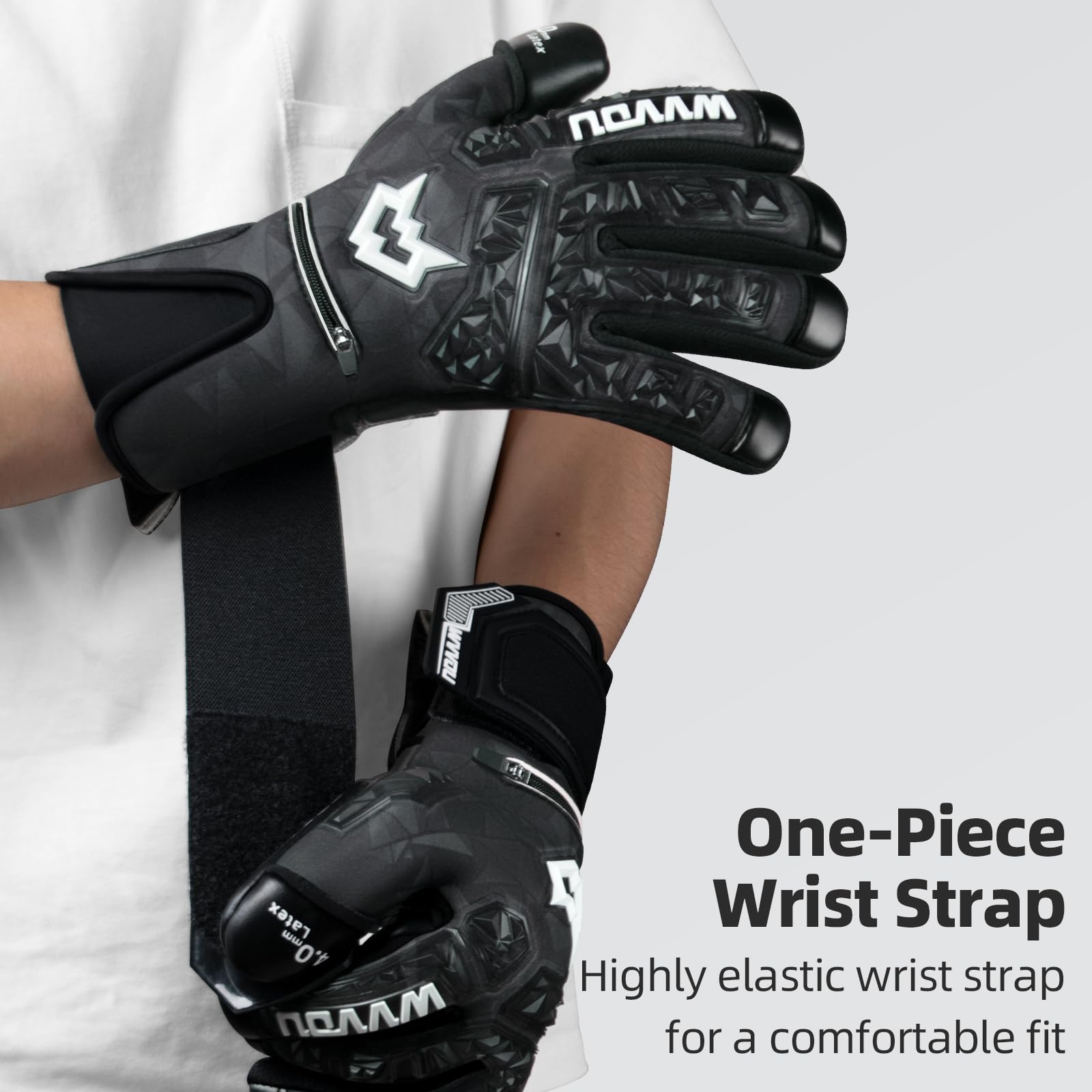 5 DETACHABLE FINGER SAVES: The soccer goalie gloves use 5 detachable finger saves (general gloves only have 4 excluding the thumb), which provides more comprehensive protection. Whether you are a professional or an amateur, it can provide you with excellent protection.