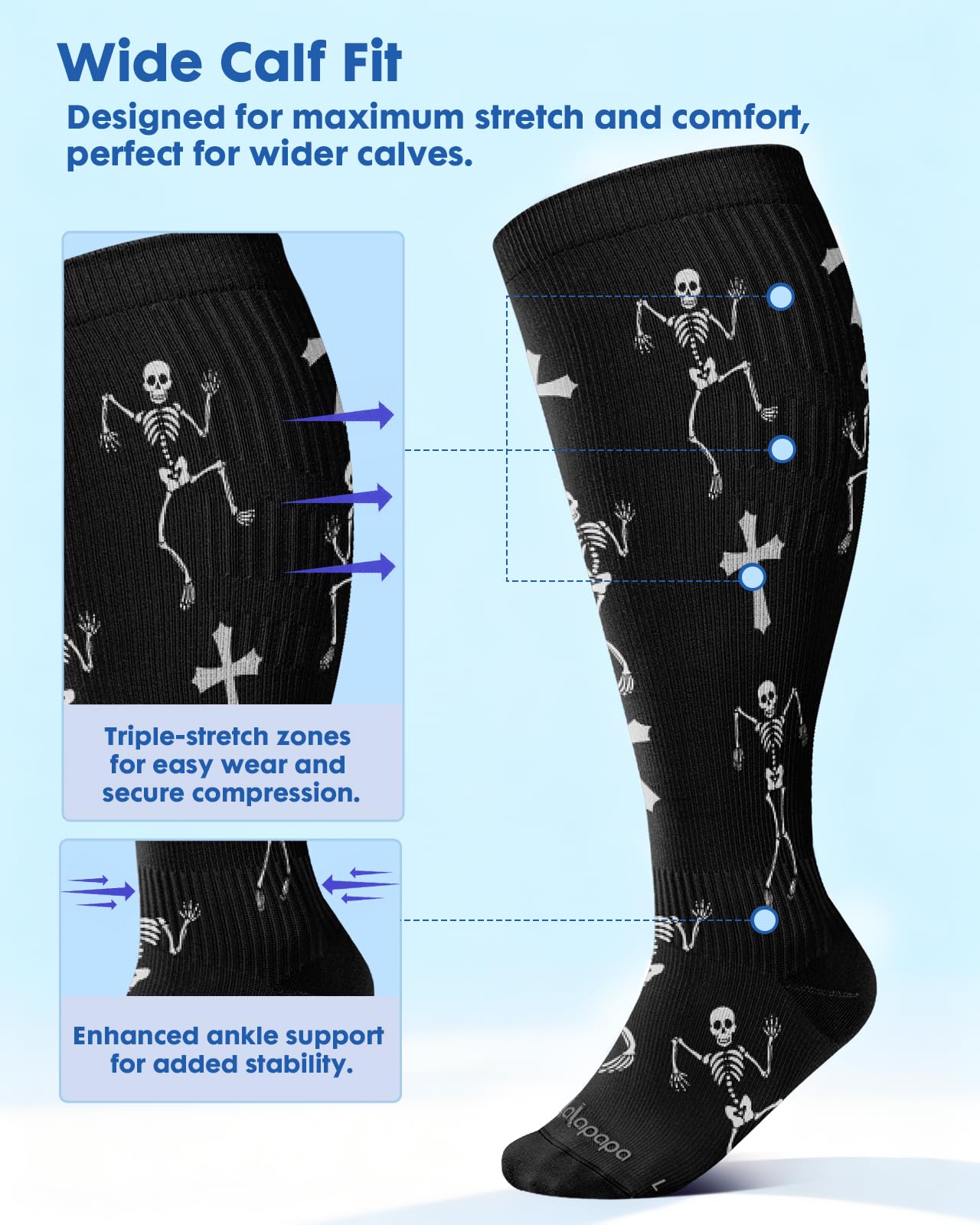 Triple-Stretch Design for Wide Calves: Lalapapa compression socks are specially engineered for wide calves, featuring a unique triple-stretch zone at the widest part of the calf. This innovative design ensures maximum elasticity and comfort, making them easy to put on and take off while maintaining a consistent 20-30 mmHg compression level. Say goodbye to the struggle of tight, restrictive socks and enjoy all-day support tailored for you