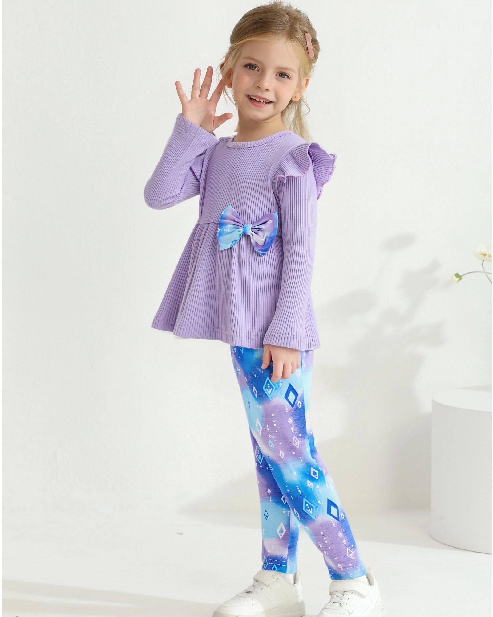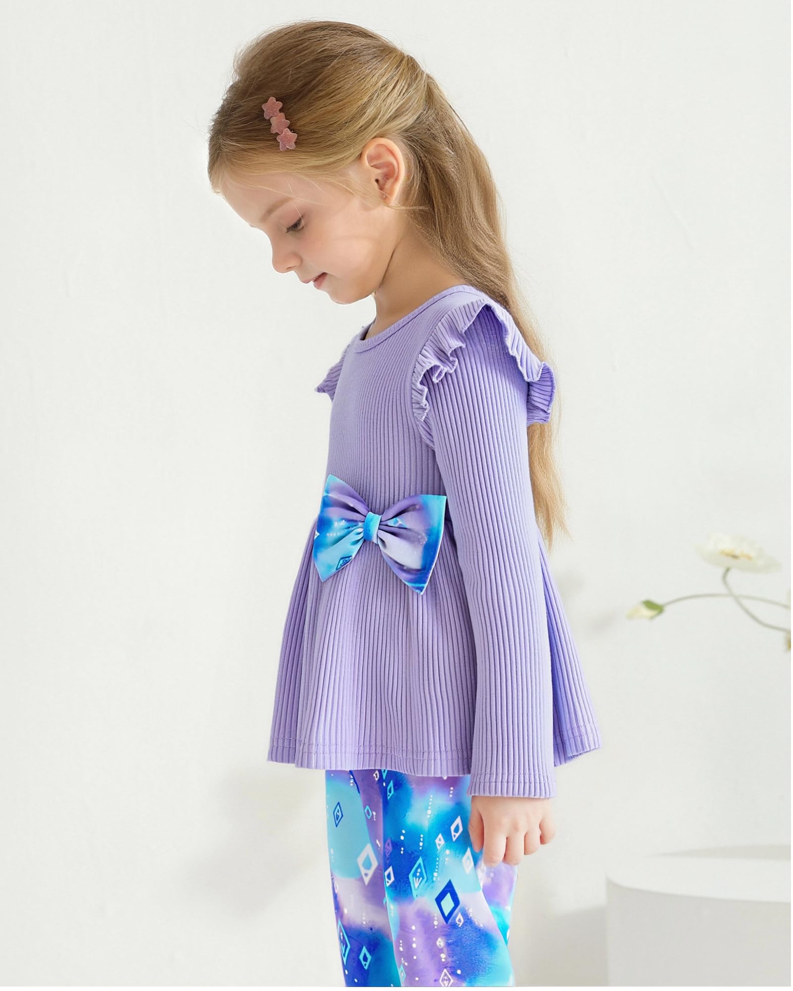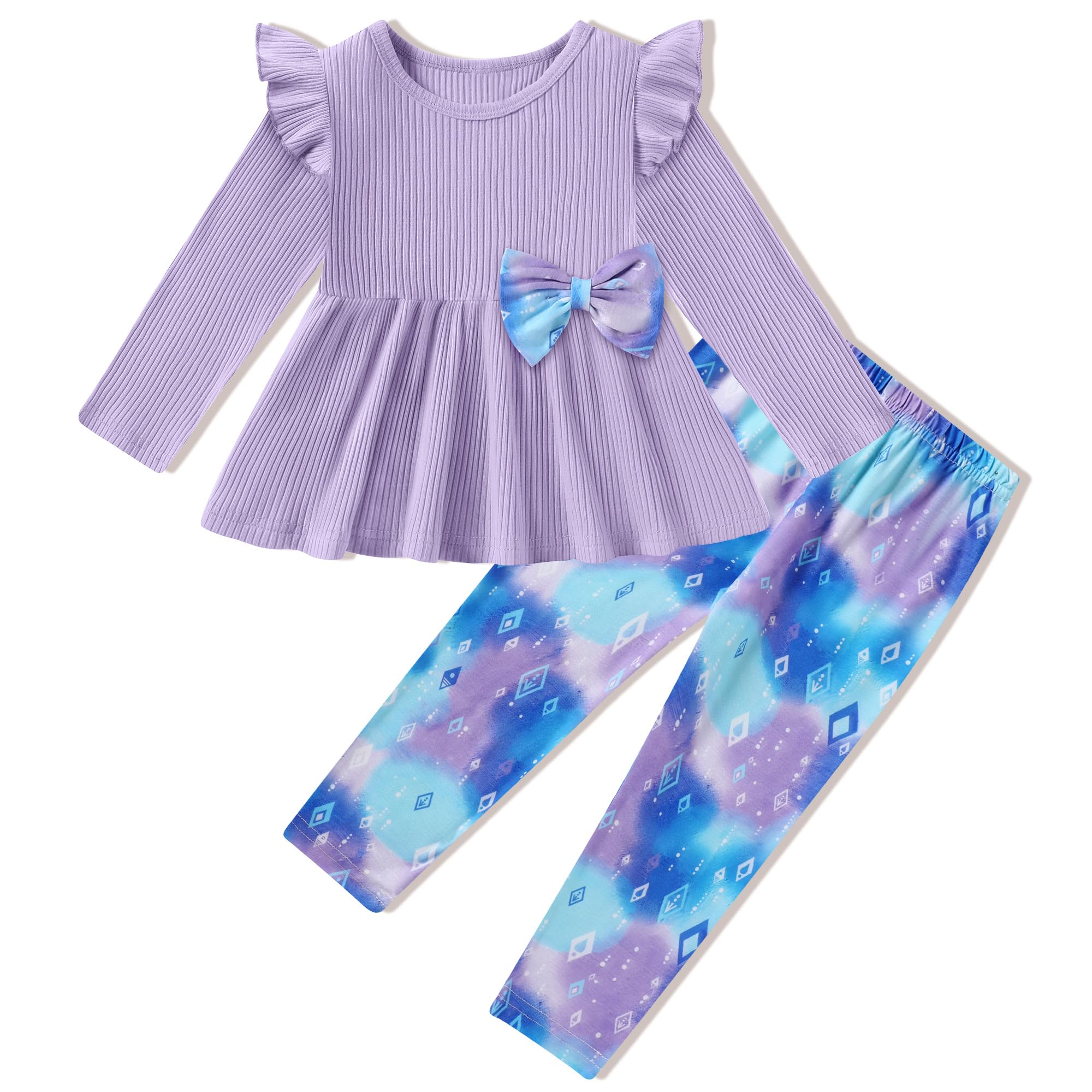 Packages:This toddler clothes for girls includes a solid color long sleeve top and a popular patterned pants;Machine washable