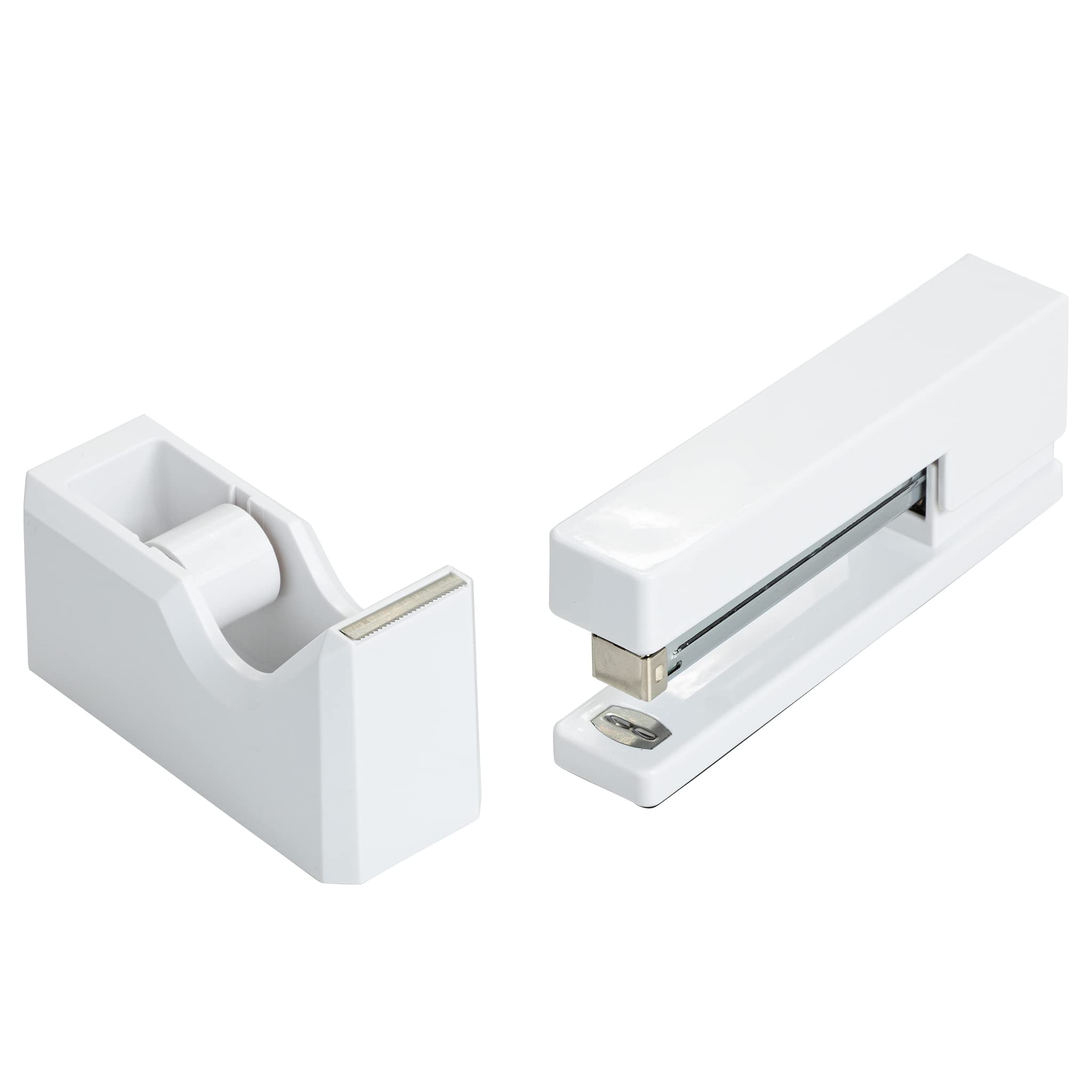 Stapler Size: 6 x 2.5 x 1.125 inches | Tape Dispenser Size: 4.5 x 2.5 x 1.75 inches