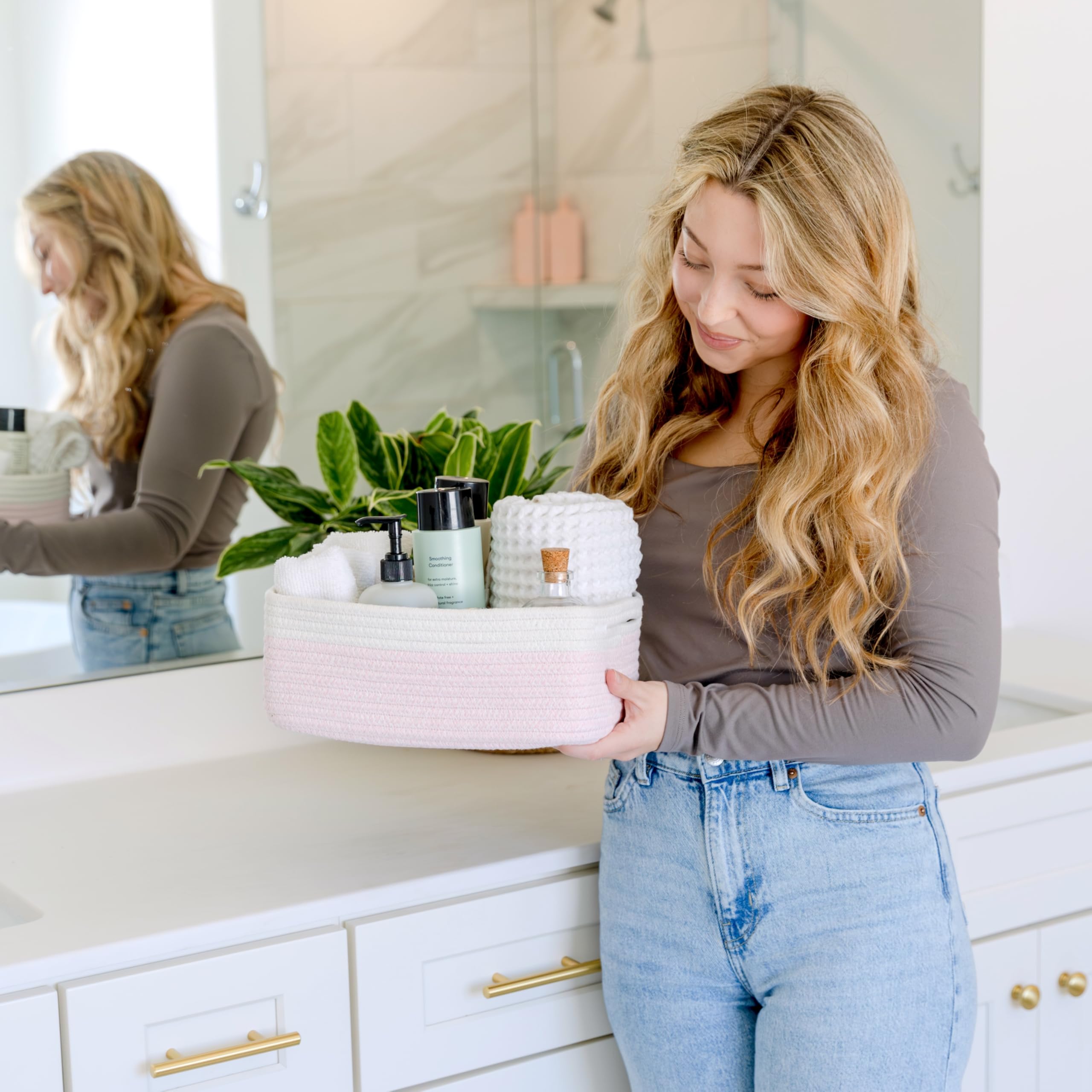 Safe, Natural Cotton Organizer Bins: Crafted from the highest quality material in the market, our storage bins are oh-so-sturdy (and cute) and ready to take on little humans. They’re 100% safe, so you can rest easy if teething toddlers take a nibble. Reinforced Hidden Handles: Now you see ‘em, now you don’t! With completely hidden handles that blend seamlessly into the rope basket, you’ll be the Houdini of home organizing. They’re even double-stitched and reinforced for extra heavy loads!