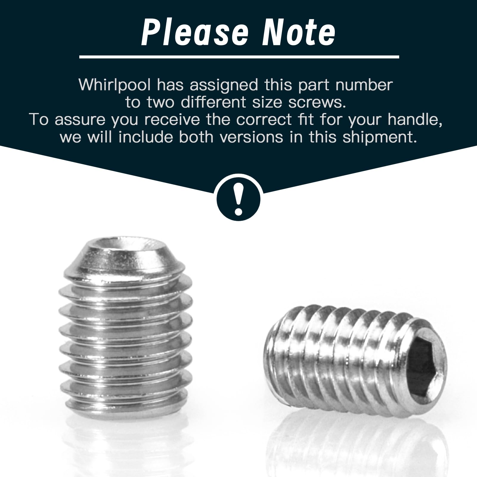 Please Note: Whirlpool has assigned this part number to two different size screws. To assure you receive the correct fit for your handle, we will include both versions in this shipment.