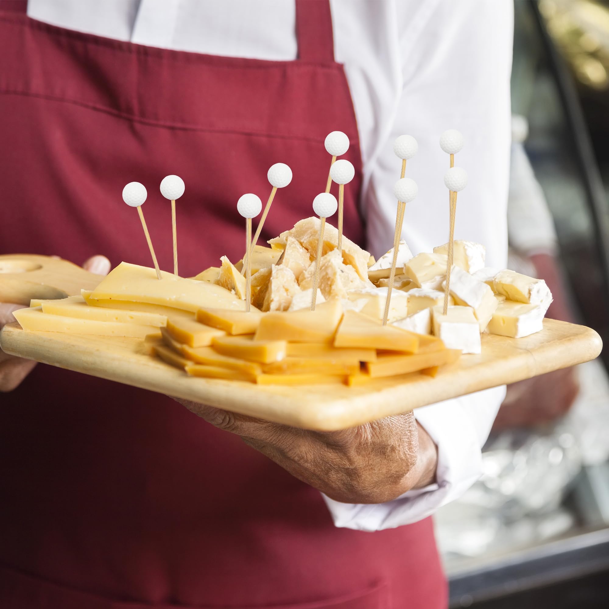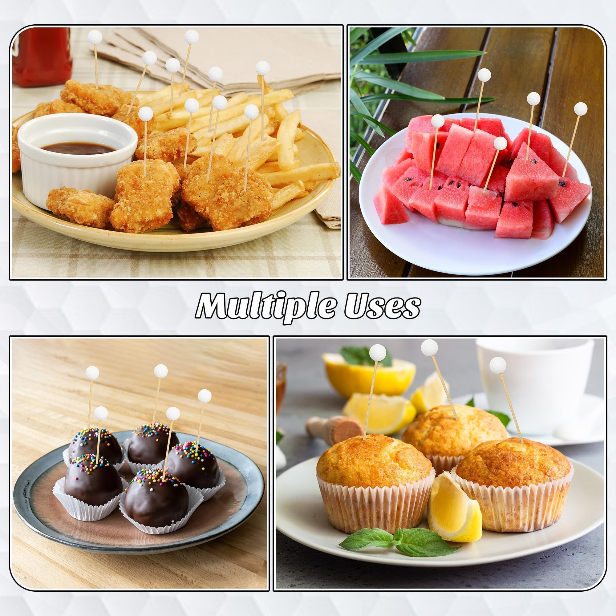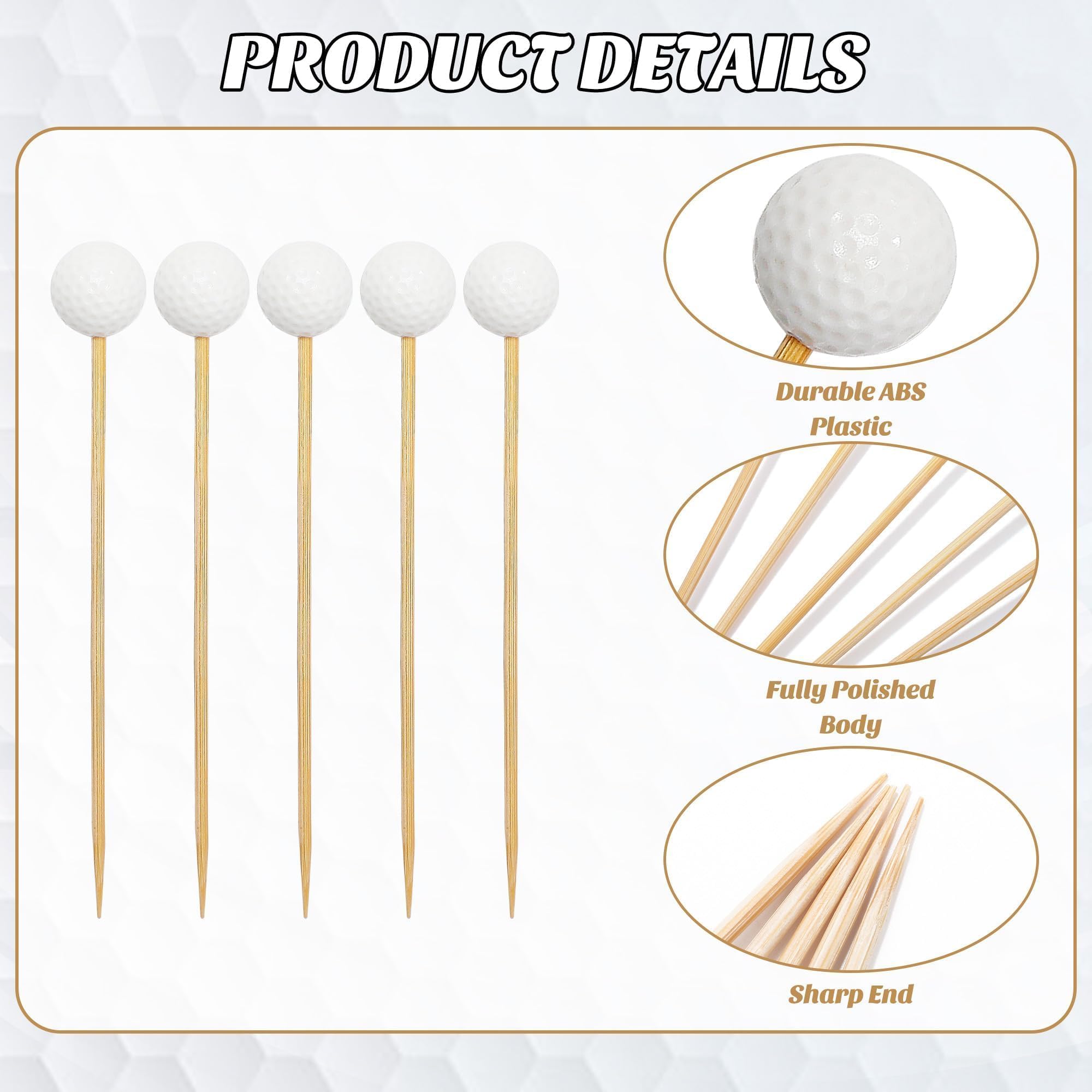 Cute design: you will receive 100 pieces of golf toothpicks, which are sufficient for your daily needs; our golf skewers are composed of white golf ball decorations and wooden toothpicks, adding a special touch to your golf-themed party, suitable for cocktails, appetizers, and desserts