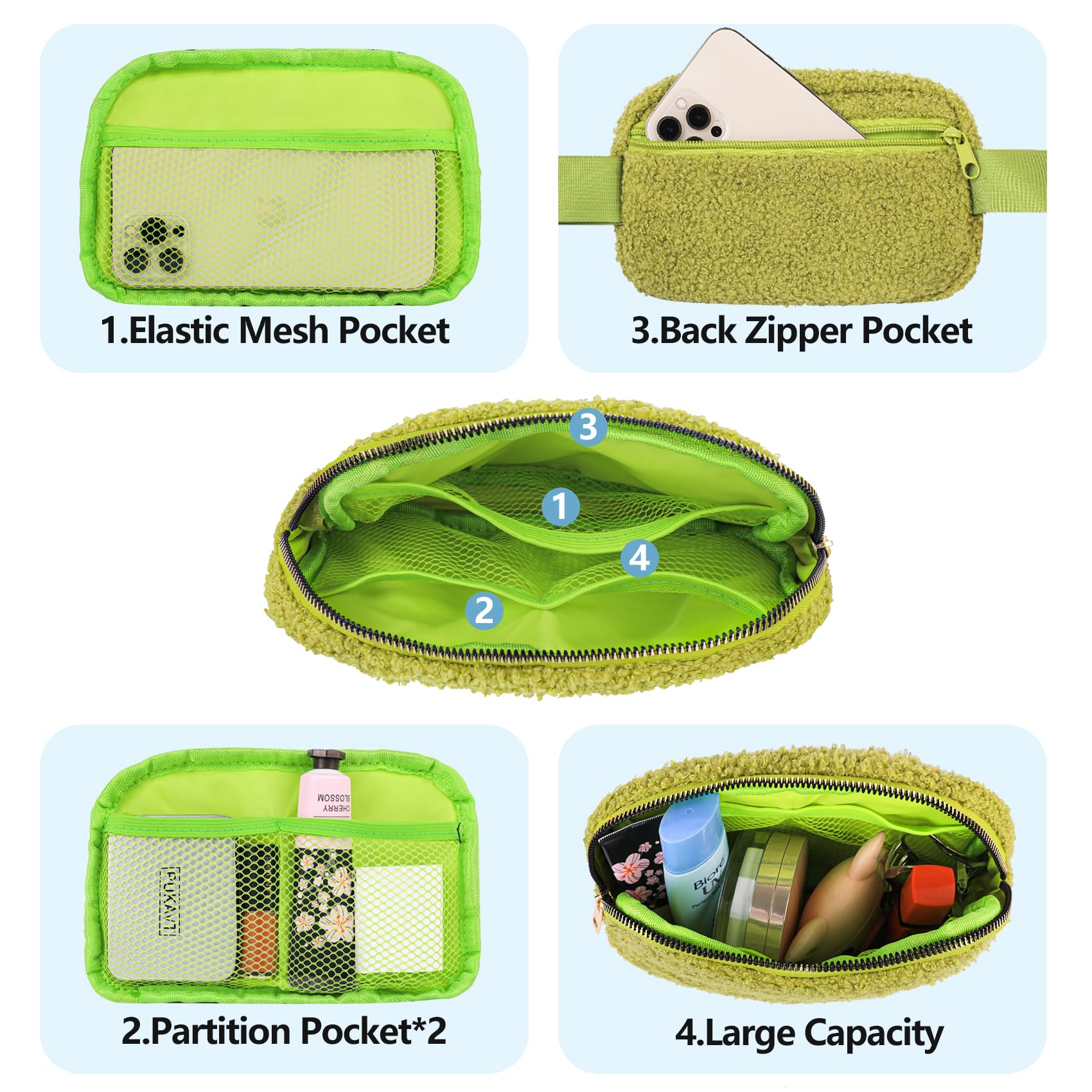 Enough Capacity:Spacious main pocket and back pocket with zipper closures keep all of your essentials secure. You can put key, cosmetics, mobile phones and other items in this waist pack.